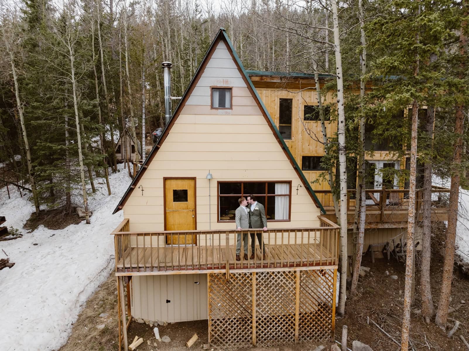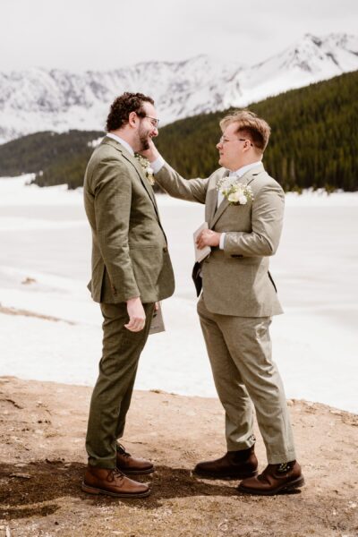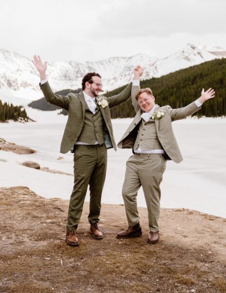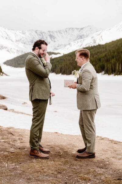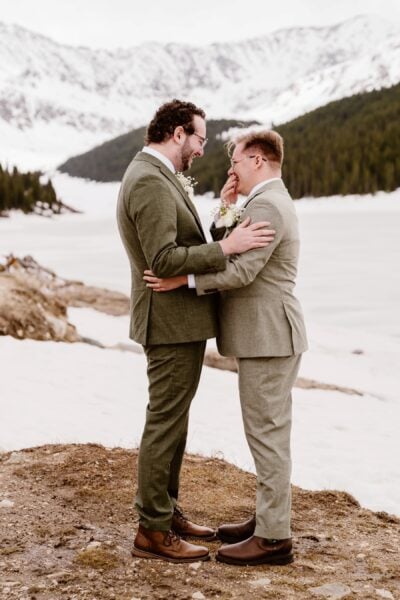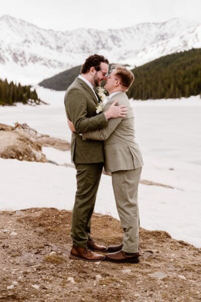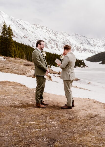Their ceremony took place in a private mountain location surrounded by spring snow and open views. With no guests present, they self-solemnized and exchanged heartfelt vows focused on their journey, their challenges, and their commitment to one another.