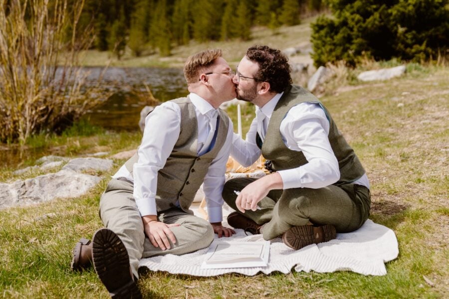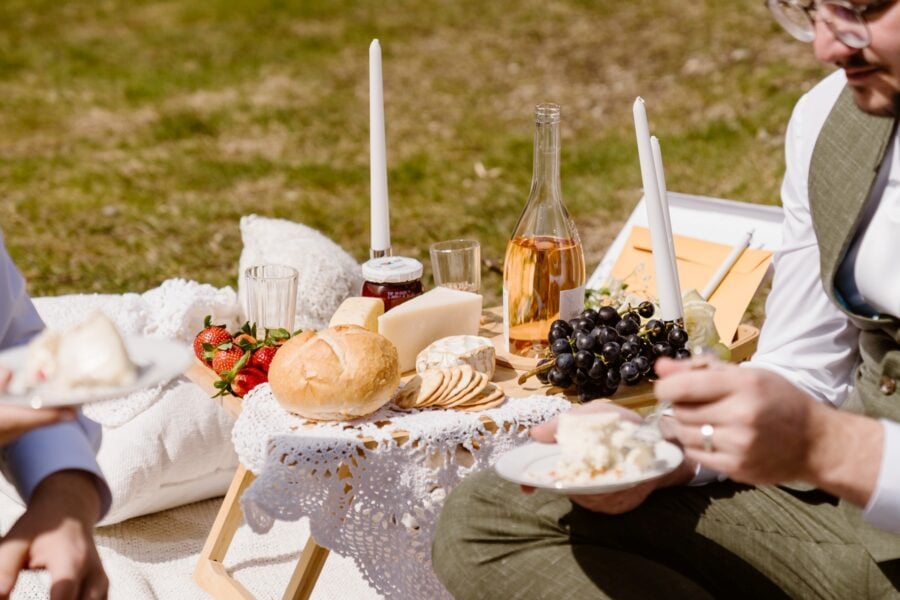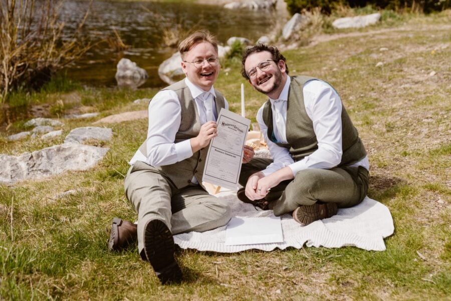The picnic also marked the moment they signed their marriage license, officially completing the legal part of their marriage. This quiet task fit naturally into the flow of the afternoon rather than feeling separate or formal.