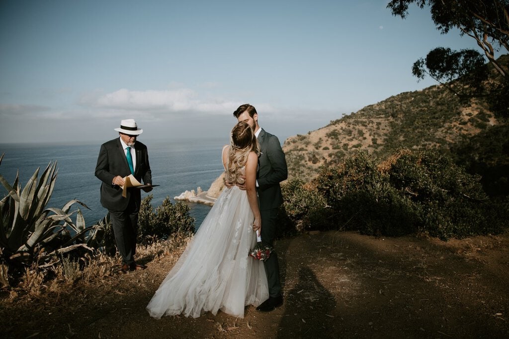 “We planned the trip out about 10 months in advance, like planning a more detailed vacation… We went to Catalina last year on a day trip and thought it would be such a beautiful place to run away to… and a romantic place to elope… The island offers elopement packages which made the ceremony [and] legal aspects of getting married very easy… We found our photographer very early and made sure she was willing to travel. Charlotte is amazing!”
