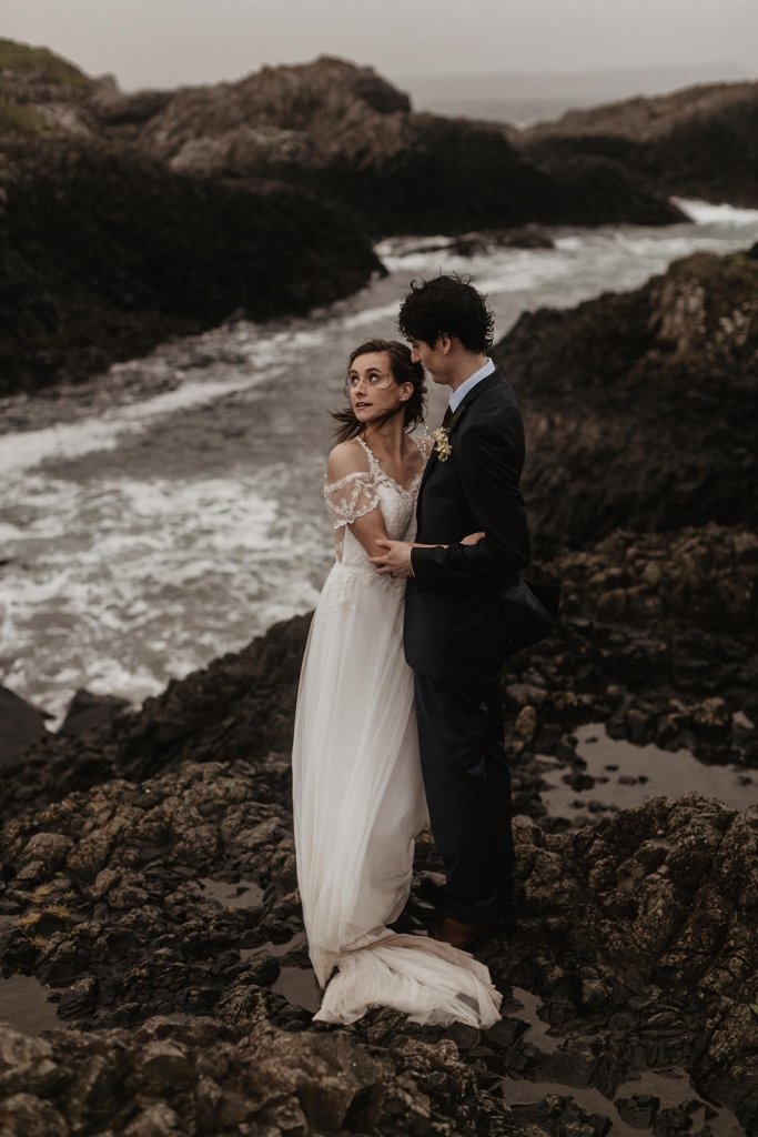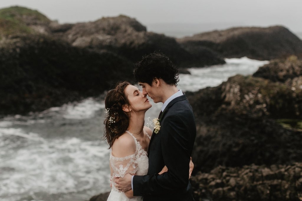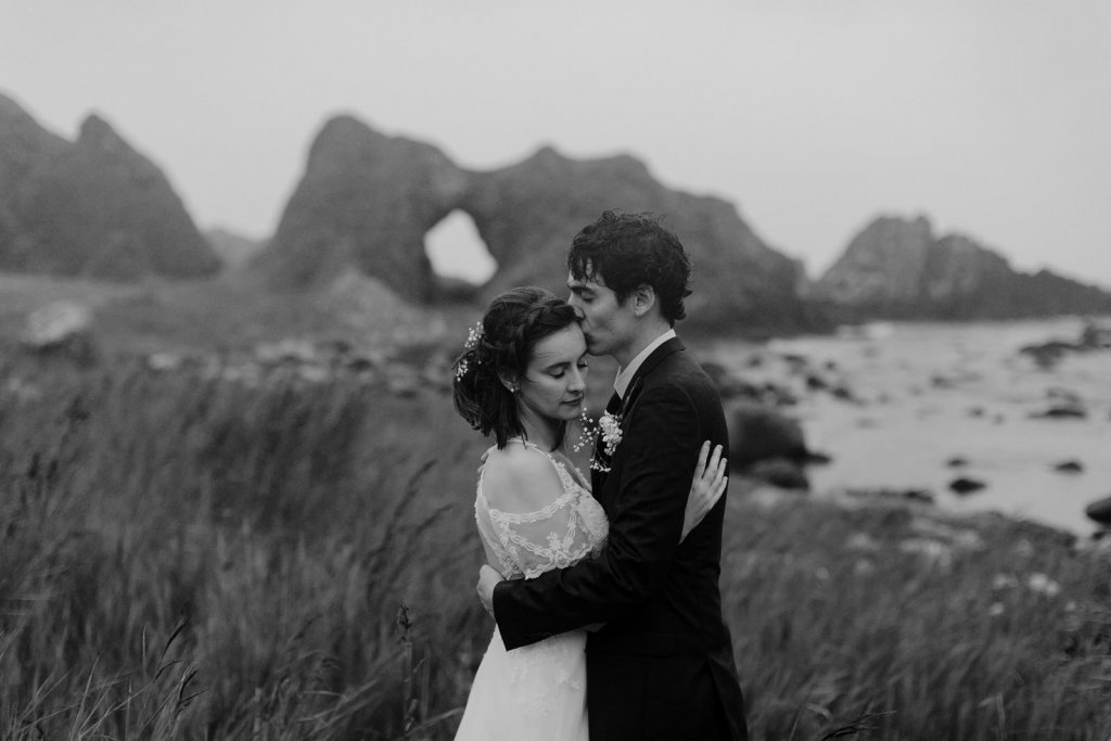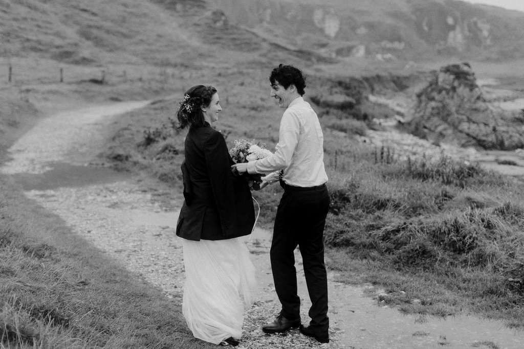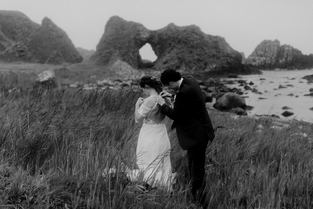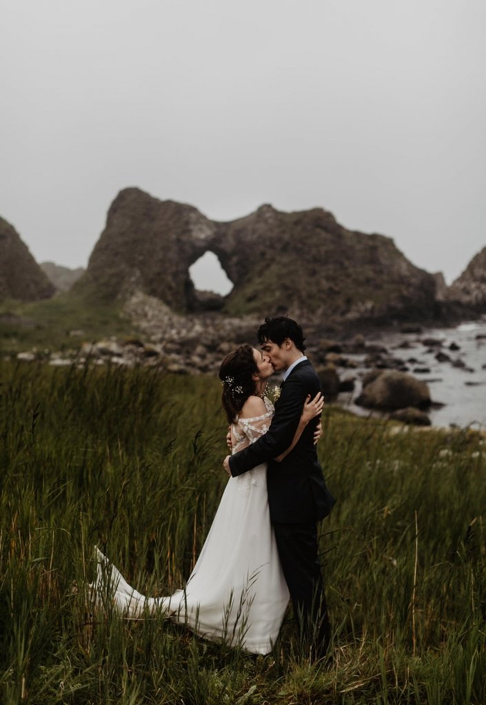“While doing research for a great elopement backdrop, I came upon the Northern Ireland coast. We wanted the wedding to be both a destination location to conjoin with our honeymoon, and a great landscape to be surrounded in during our small ceremony. It turned out that none of our family had been there before either, so it was an adventure for all of us, which was great to experience together.” [Stacie]