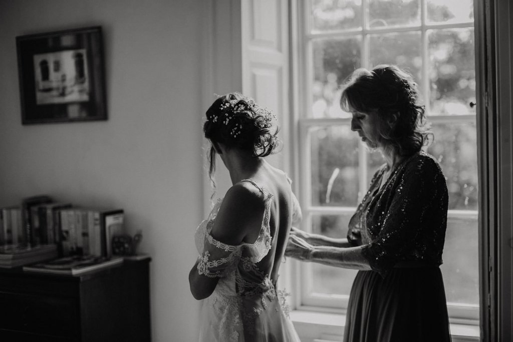 Stacie tells us she handled a lot of the planning herself. She found an Airbnb to get ready, the Bovagh House in Aghadowey, and teamed up with a great elopement team.