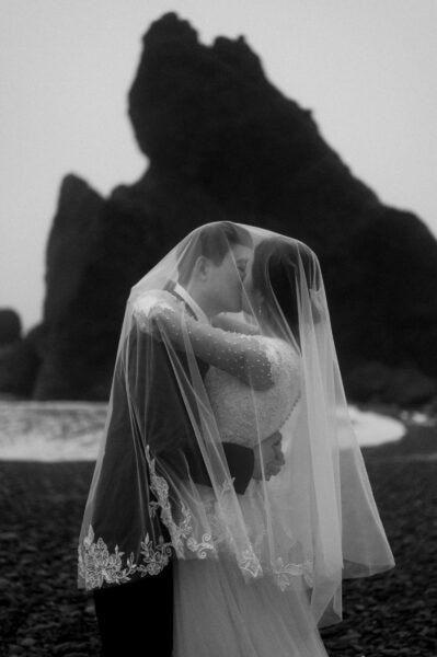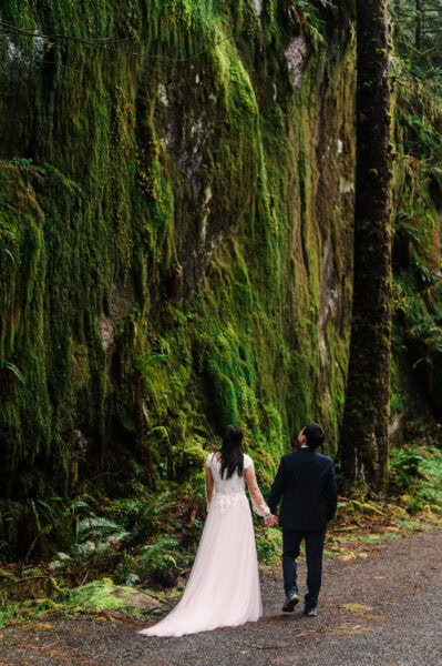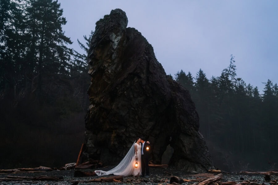 Then we’ll head to my favorite beach (another hidden gem) for a picnic dinner as you savor these last hours of your wedding experience. And for sunset, we’ll go to the iconic Ruby Beach where you can dance along the water’s edge and take moody, romantic portraits amongst the giant rocks that line the ocean shore. Those last photos will capture the wonderfully misty and moody feel of the Pacific Northwest– and your love story will be the star.