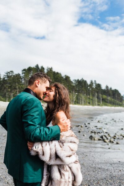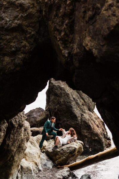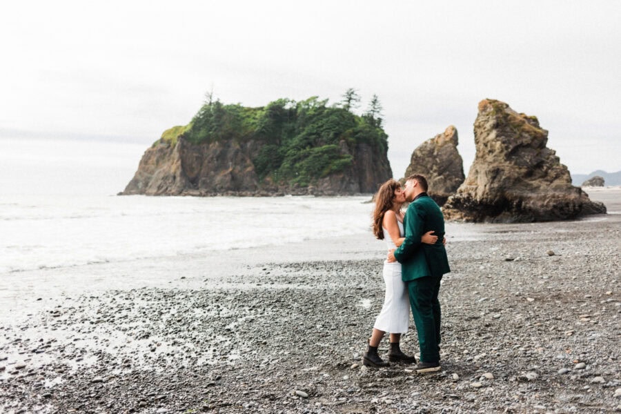 This elopement is for couples and small groups up to 15 people who want windswept beauty and a day full of nature elements with a chance of Twilight Mood or breathtaking light. Your Olympic Peninsula elopement begins at your vacation rental in the early morning hours. You’ll get ready separately and I’ll help set up a first look on the property before we head out for your adventure!