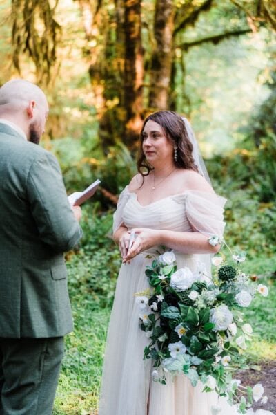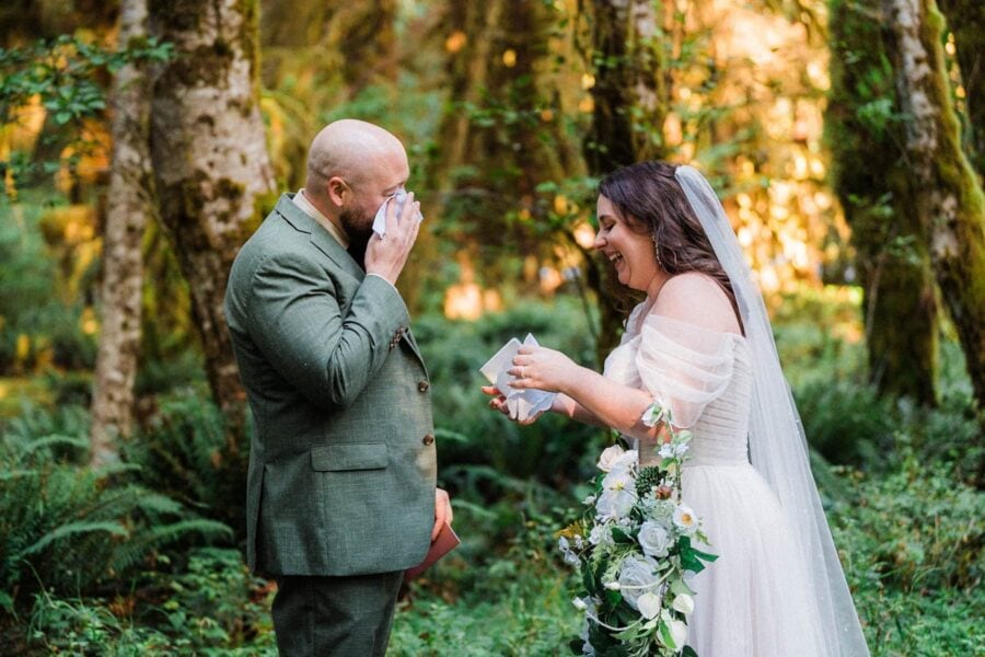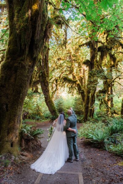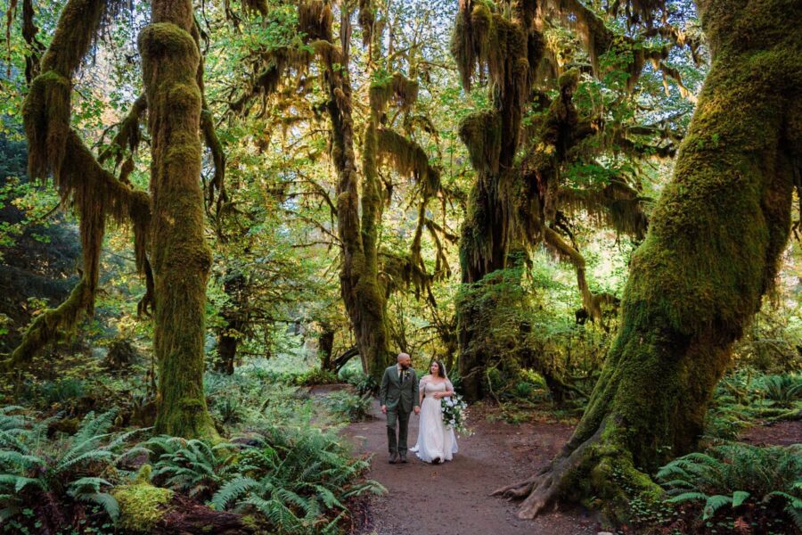 Your adventure begins at the Hoh Rainforest. Large trees with moss dripping off the branches will have you in awe as we venture on an approximately 1 mile trail. You’ll share your vows amongst the trees, golden light starts to peak through the tree-filtered canopies. It’s a quiet, magical ceremony setting that feels like a secret only you two know about. We’ll keep an eye out for bald eagles and elk while exploring the trails.