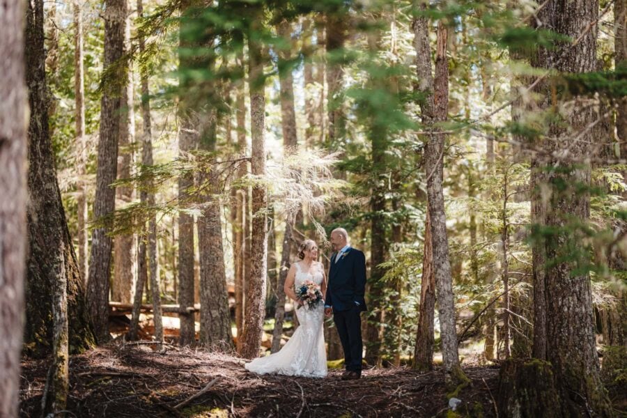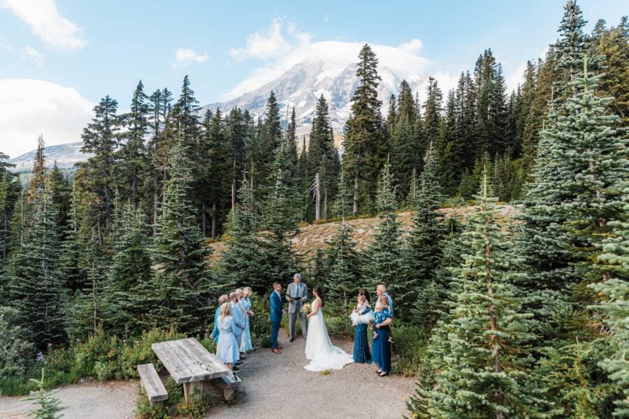 As late afternoon drifts into evening, you’ll exchange vows in a meadow bursting with wildflowers, with Mount Rainier rising impossibly close behind you. Lupine and paintbrush color the ground at your feet while glaciers catch the last golden light above. Filmed and photographed together, the moment feels layered. Your words carry softly into the alpine air, the wind moves through the flowers, and your laughter is caught between frames. It is private, breathtaking, and a memory you will be able to both see and hear for years to come.