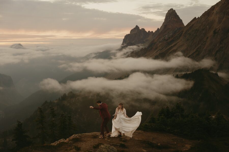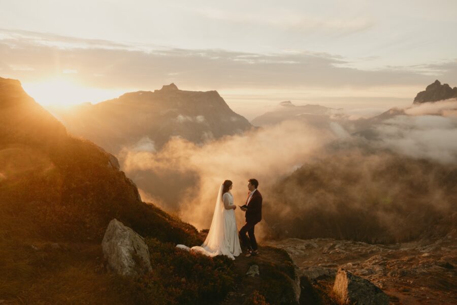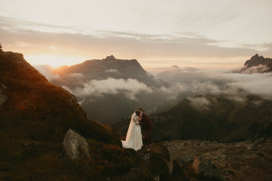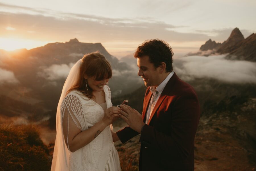 From there, we’ll make our way to your chosen ceremony site—maybe an alpine meadow bursting with wildflowers, or a ridge with sweeping views of the peaks stretching endlessly into the horizon. Here, you’ll exchange vows with the mountains standing tall as your witnesses. If you’ve brought guests, they’ll gather close, their presence adding warmth and joy to the wild setting. The ceremony will be equal parts breathtaking and intimate, a moment you’ll carry with you forever.