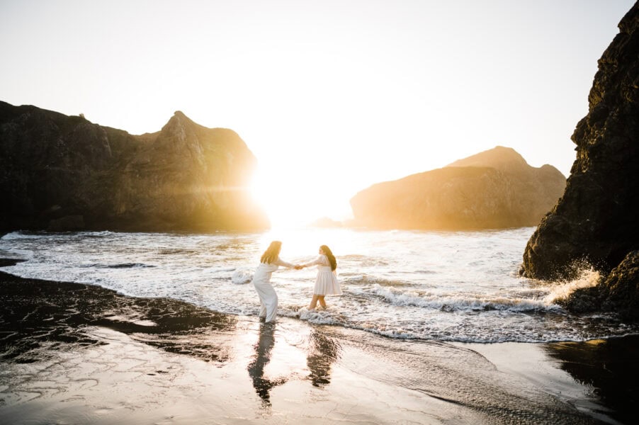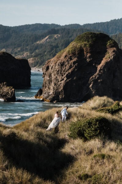 On Day 3, witness historic lighthouses, resident gray whales (they’re here from April-November!), rugged sea cliffs, and try your hand at agate hunting. We’ll spend the late afternoon hiking along the cliffs, and end with a sunset on the beach as you keep an eye out for sand dollars, seals, sea lions, and other treasures that have washed up. A perfect and relaxing way to end your elopement adventure in Oregon.