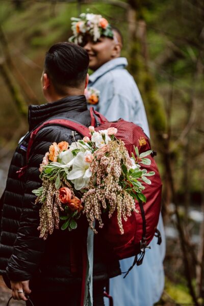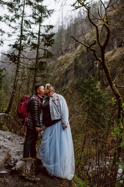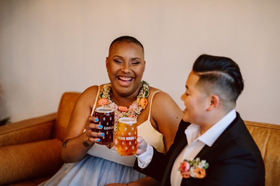 We’ll start the day with you getting ready together at your hotel or Airbnb (complete with stunning views of the Gorge right from your room). You’ll enjoy coffee and a light breakfast while helping each other get ready for one of the best days of your life together.
