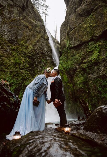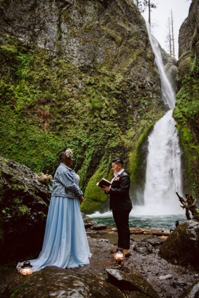 After your vows, you’ll spend some time enjoying the scenery. You’lll settle in with a blanket on a comfy outcropping with views of the falls and open letters written to you from loved ones, laughing and crying over their sweet messages and well wishes for your future together.