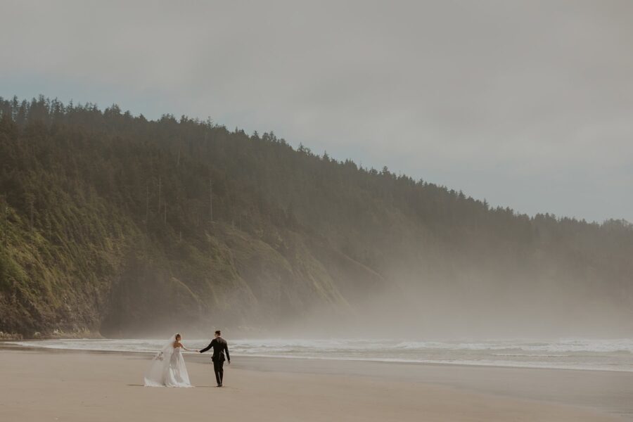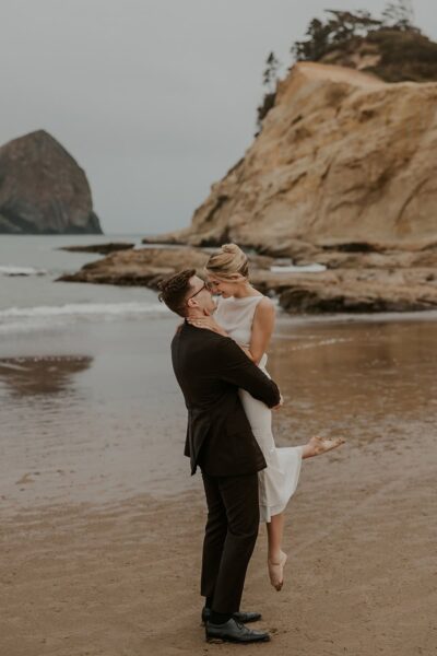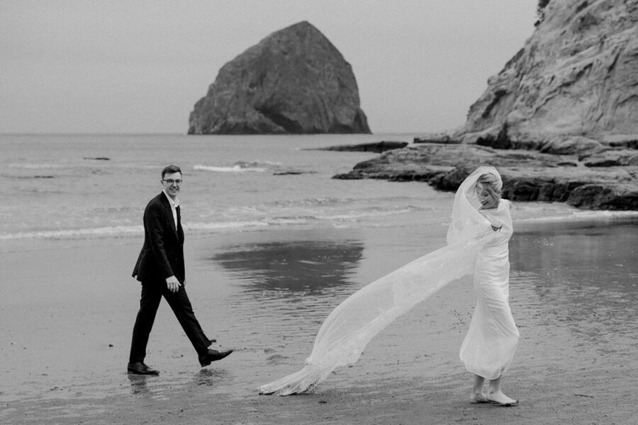Explore the geological wonder that’s Cape Kiwanda and toast your vows at a brewery! Start your day getting ready surrounded by loved ones. Get lots of candids as they help you get ready and some detail photos of your rings and jewelry. Share your first look outside the vacation rental before venturing to the beach.