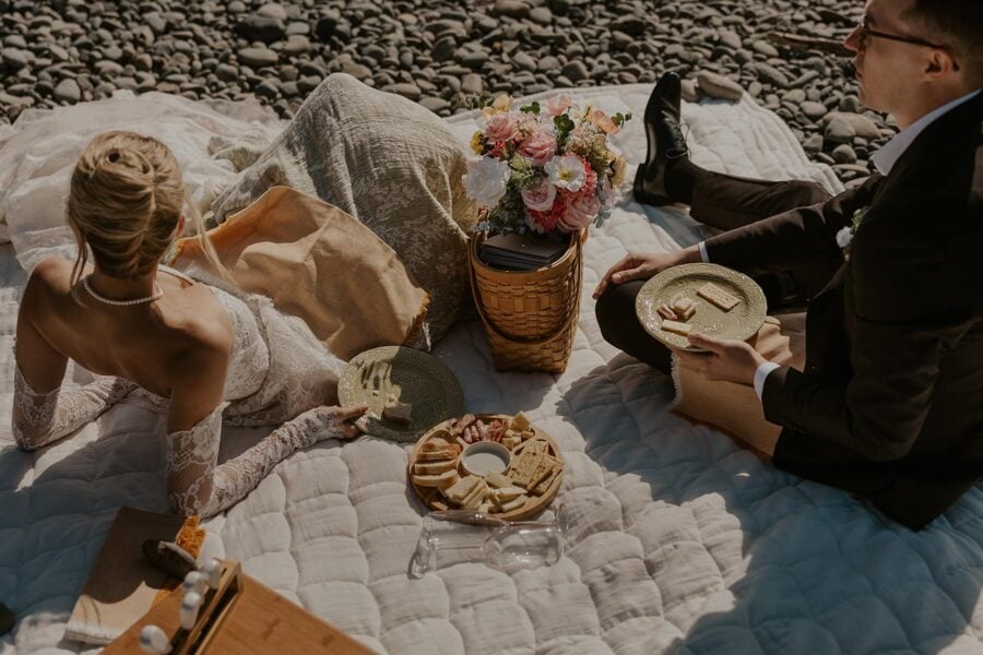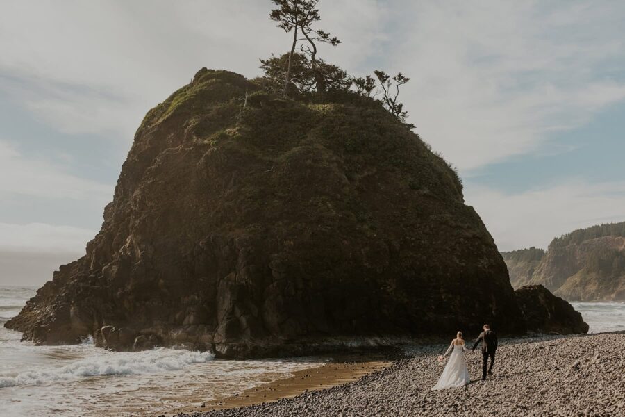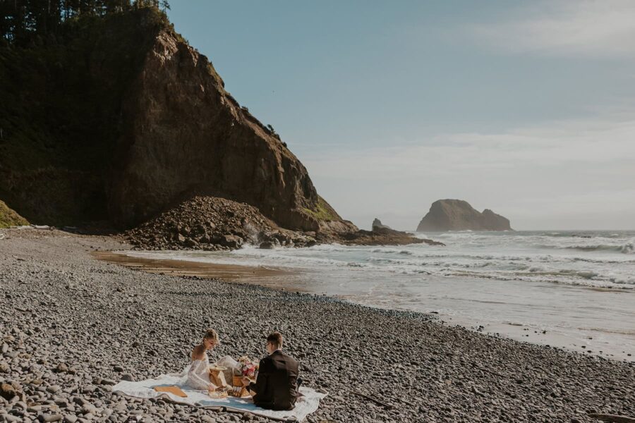 Have your ceremony with waves crashing behind you and all your most important people witnessing. Get family photos and some couple portraits on the beach before leaving the group behind for some private time. Hike into a secluded beach for a charcuterie picnic, read vows to each other privately, and get some portraits with the rocky coastline.
