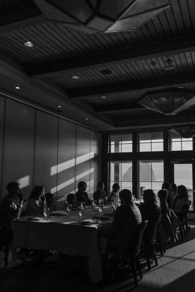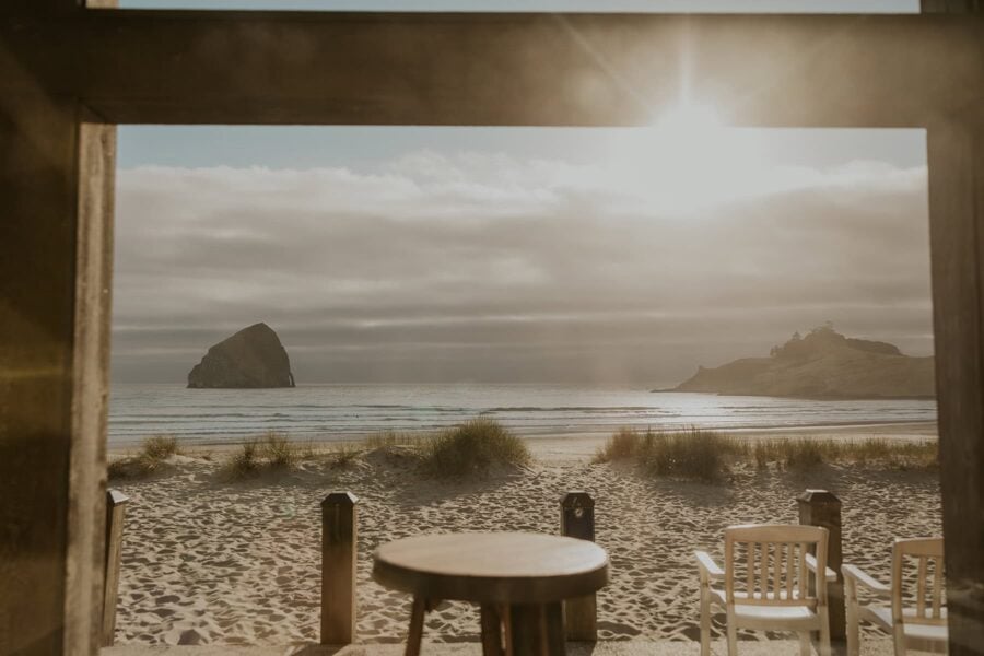Your next stop is a private room rented at Pelican Brewing in Pacific City. With a view of the beach from the table, share a meal, cake, toasts, and dances in the private space. As the sun starts to go down, sneak away to Cape Kiwanda for some golden hour portraits to wrap up the day.