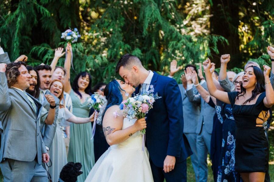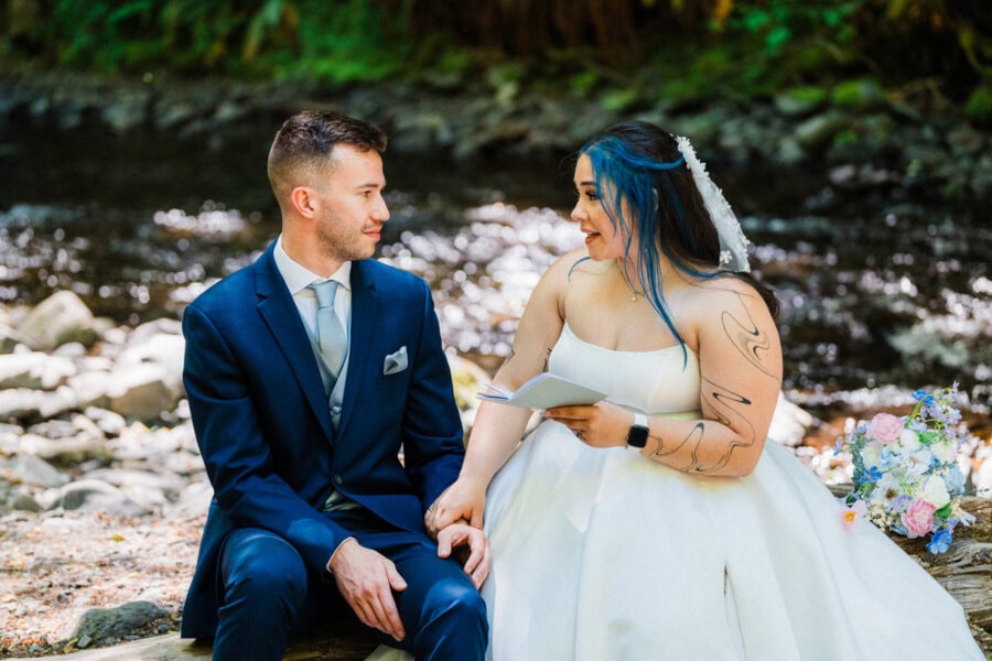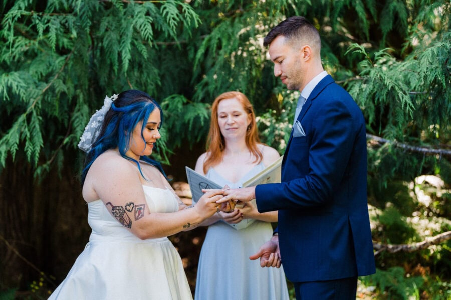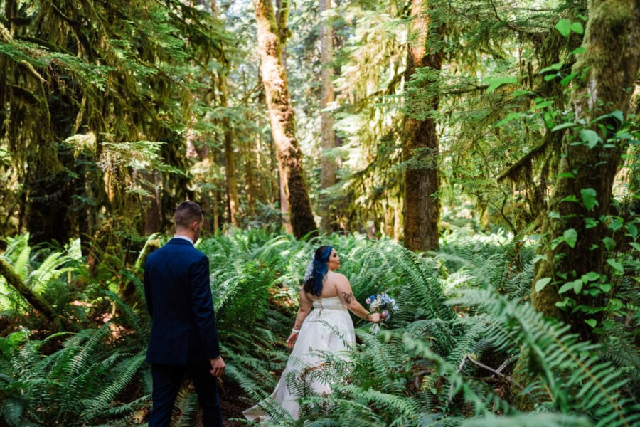 From there, you’ll head into a secluded stretch of forest for your private vows. Surrounded by tall trees and soft forest light, you’ll share your promises away from the crowds, grounded in the calm of the woods.