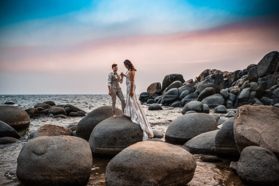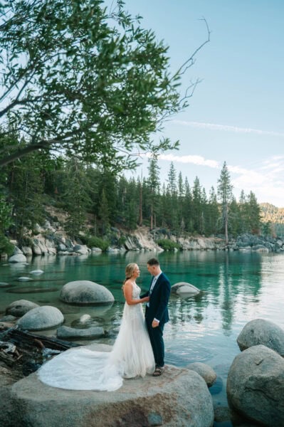 If you’ve dreamed of a wedding day that feels like an adventure, this Lake Tahoe package was made for you! From a sunrise boat ride across calm waters to a secluded shoreline ceremony and a mountaintop toast with the lake at your feet, this experience blends romance with the wild beauty of Tahoe’s landscapes—all in just five unforgettable hours.