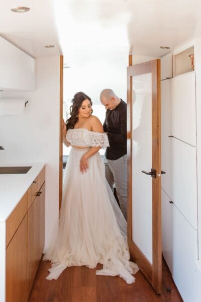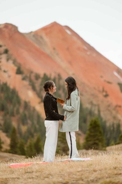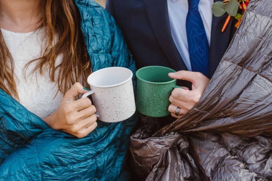 Start your day slow and intentional by making breakfast together and sipping coffee in your rented cabin. You’ll take your time hand writing your vows and helping each other get ready as soft music plays. You’ll feel relaxed, connected, and ready to get married!