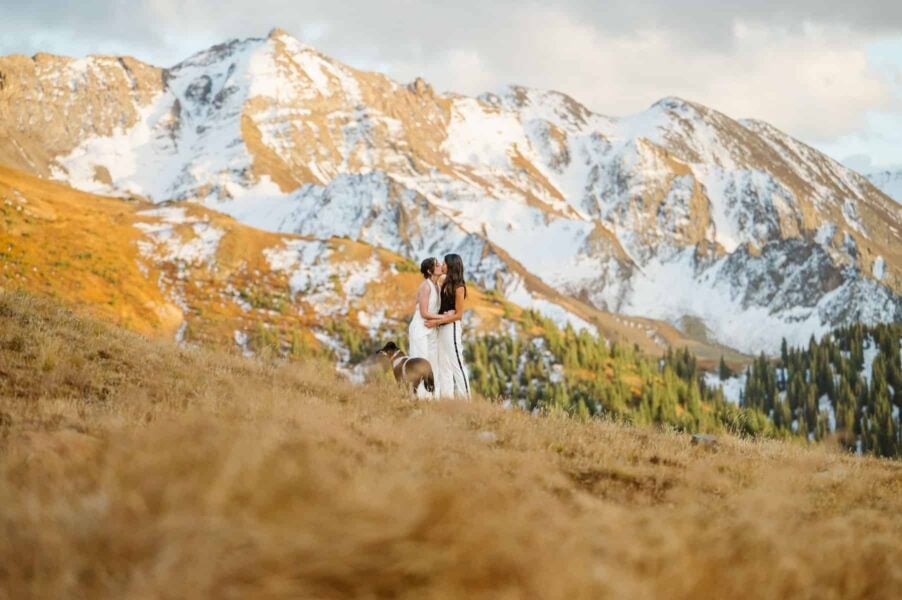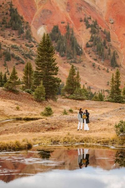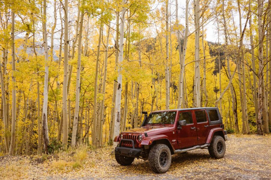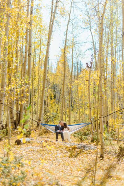 Then, you’ll take a Jeep ride up into the mountains, passing beautiful autumn scenery like golden leaves and snow-capped mountains along the way. In the quiet privacy of nature, you’ll read heartfelt vows to each other. After signing your marriage license, you’ll celebrate with hot drinks, your favorite fall snacks, and a cozy picnic setup of blankets and pillows.