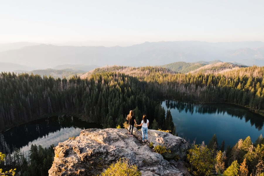 Are you ready to feel like the only two people on the planet? Next, I’ll take you up, up, up to the top of the Cascade Mountain Range, where you’ll have a 360-degree view to take in the sunset, as well as spot nearby mountains like Mt. Bachelor, Diamond Peak, Mt. Thielsen, Mt. Bailey, and even Mt. McLoughlin and Mt. Shasta in the distance. These locations aren’t found on AllTrails, so you’re almost guaranteed to have the mountain (and neighboring mountains) to yourself. As you stand perfectly still, you can hear the light wind and absolute silence all around you.