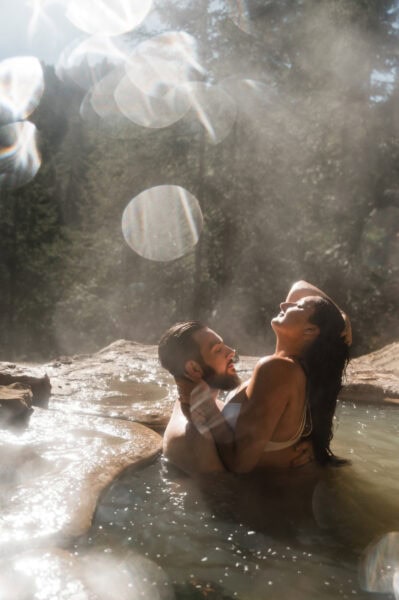 As we take in the last rays of light, we’ll break out lanterns to light our way back to the cars as you take in everything turning a deep blue hue. Back at the car and driving down the mountain to your forested lodgings, you’ll realize there’s more adventure to be had: you’re heading to a hot springs soak and even more waterfalls the very next day.