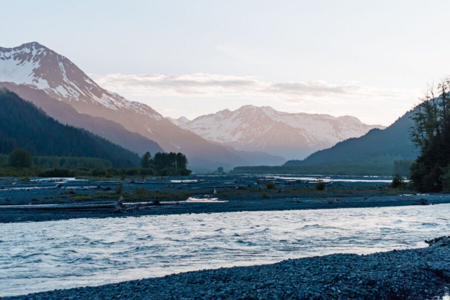 Day Two of your elopement begins slowly as you dress again in your wedding finest — perhaps a second look. Your adventure begins with coffee and delicious breakfast at a local coffeeshop before your private, captained flat-bottom riverboat excursion on the Susitna River. Eagles cruise overhead above and wildlife pops into view, while Denali towers (if the skies allow) in the distance. Midway through the 2-hour experience, you’ll pause for a premium charcuterie picnic on the shore— no rush, no hurry, just presence and celebration. Returning to shore, the rest of the day is yours to relax and explore, ending with a second night in your premium Talkeetna lodging.