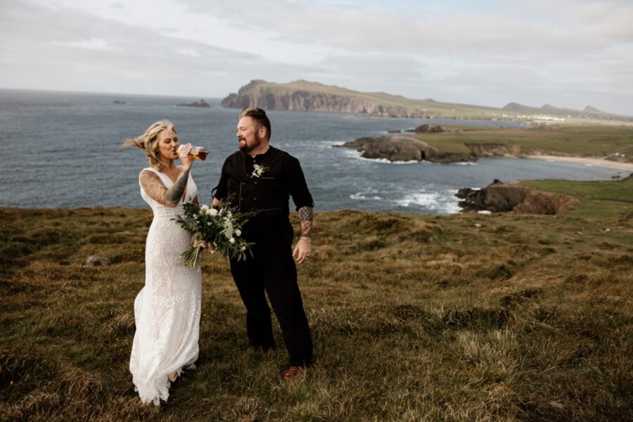 As the sun begins to dip, we’ll return to Dingle town to celebrate — perhaps with a creamy pint at Dick Mack’s, one of Ireland’s most beloved traditional pubs. Between the laughter, live music, and glow of your wedding rings under soft pub lights, it’s the perfect ending — beautifully Irish, effortlessly relaxed, and completely unforgettable.