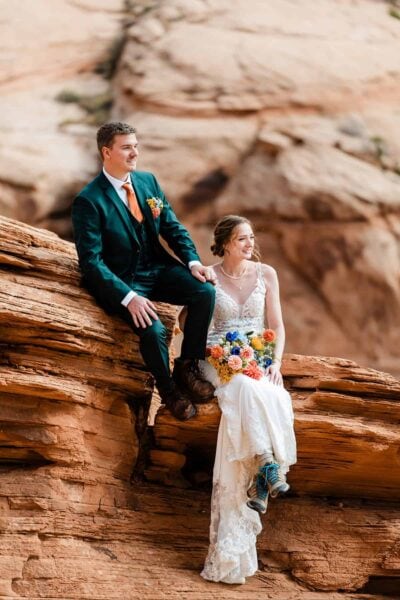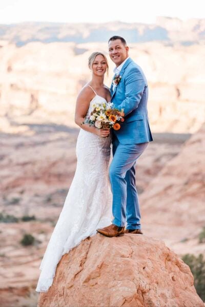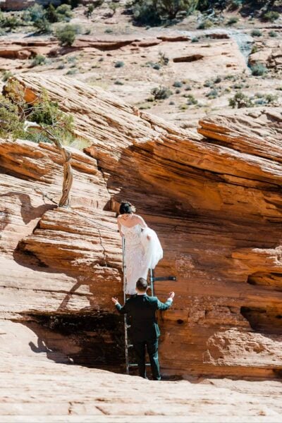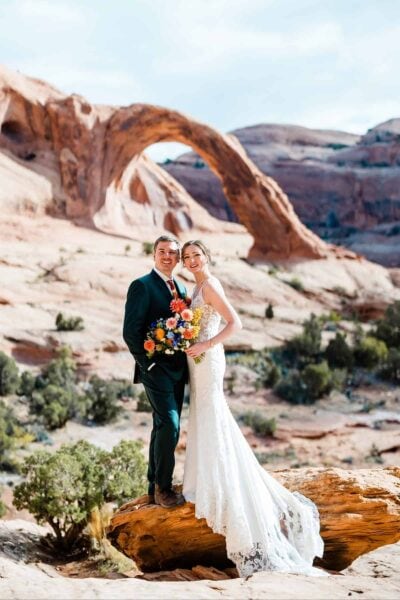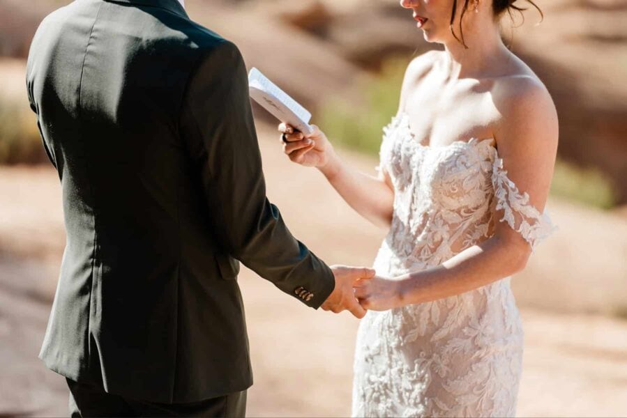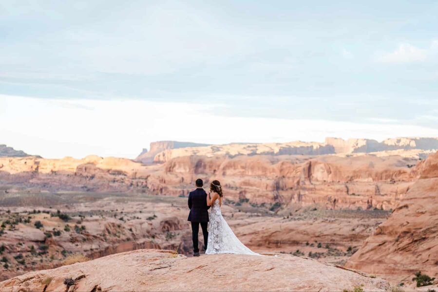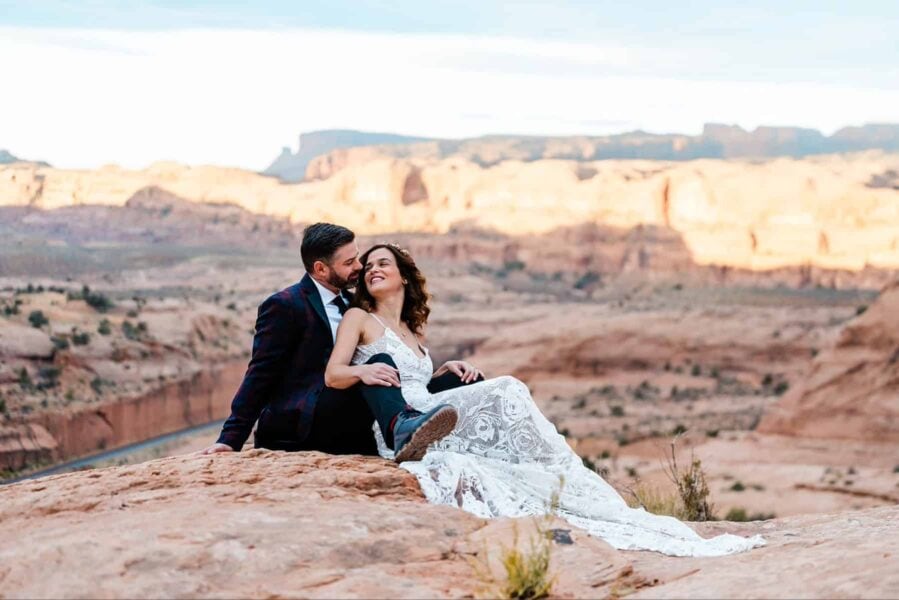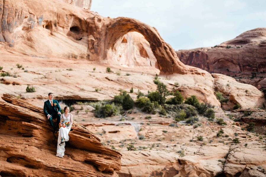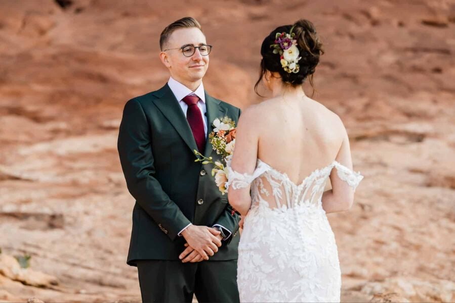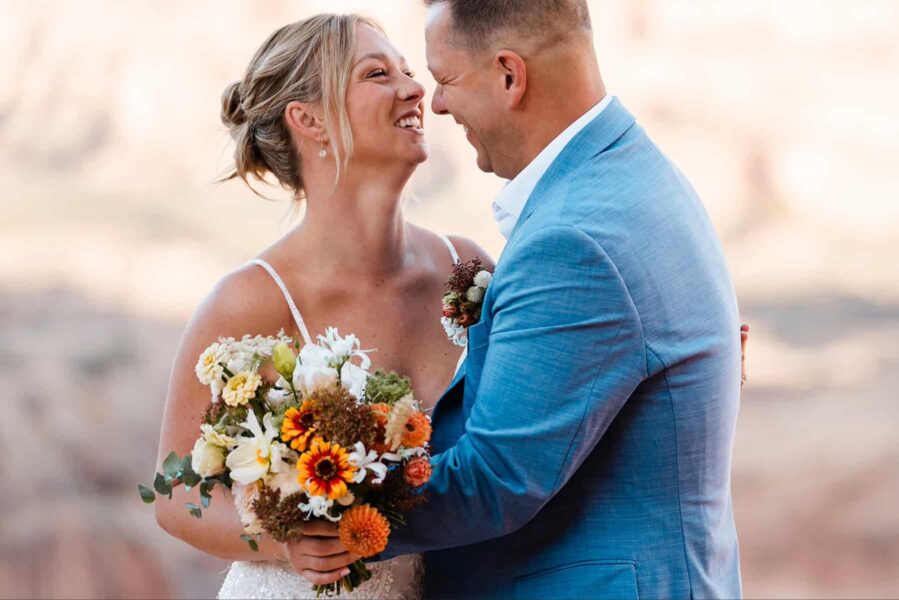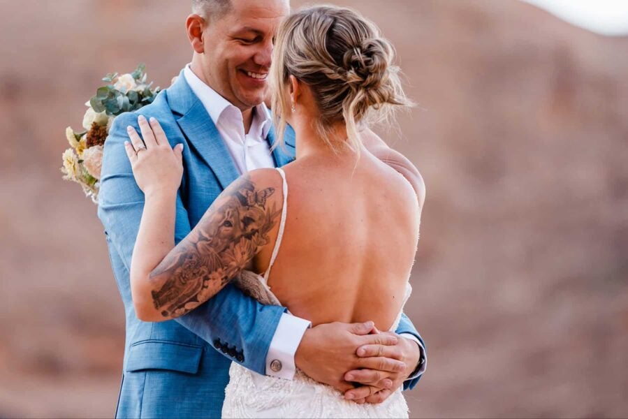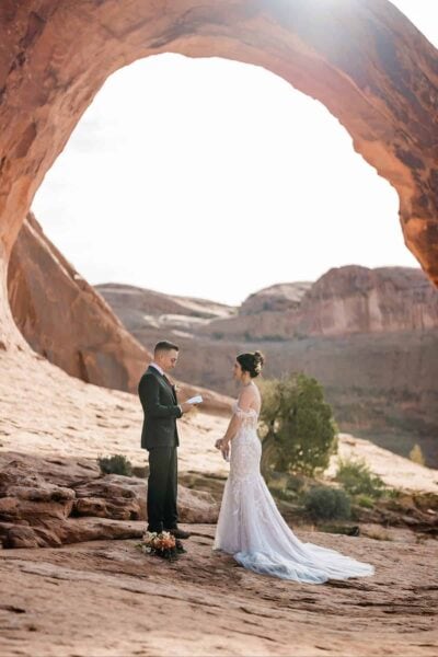 As the first light reaches the canyon walls, you will get ready on opposite sides of the arch before meeting for a quiet first look as the morning unfolds. Seeing each other dressed up for the first time, surrounded by stillness and stone, sets the tone for an experience that feels deeply personal from the very start.