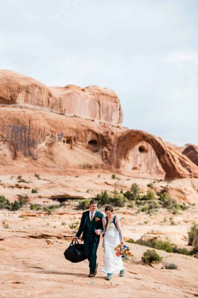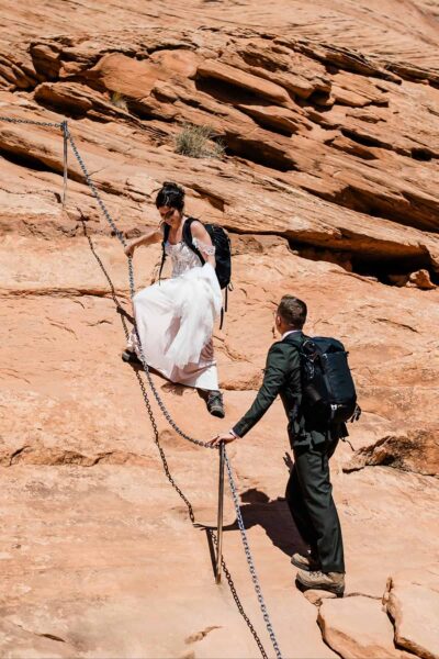 The hike out becomes part of the experience, with candid, in motion moments captured along the way as you move through the landscape together in your wedding attire.
