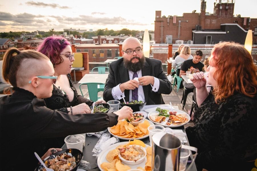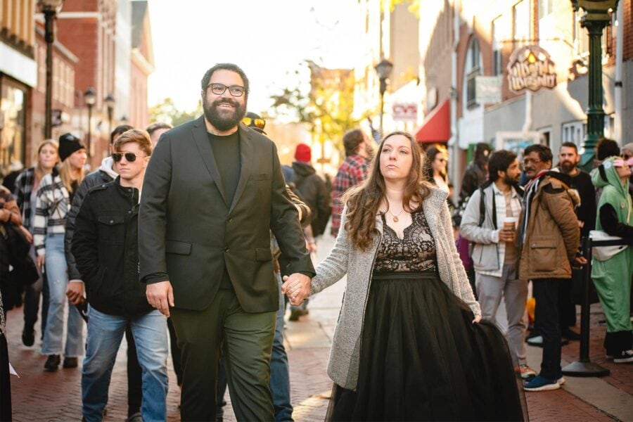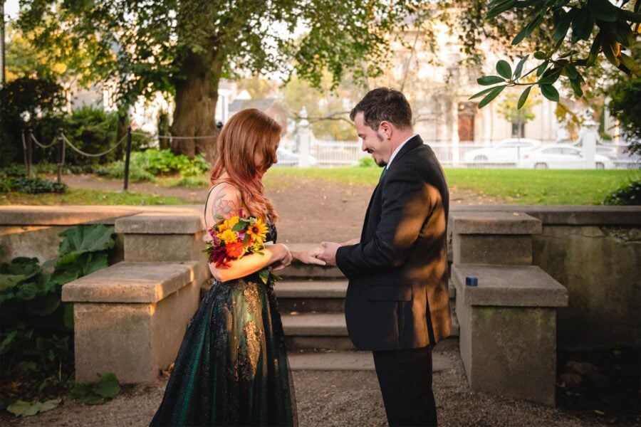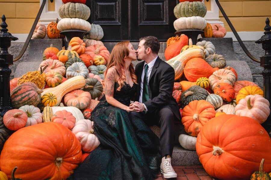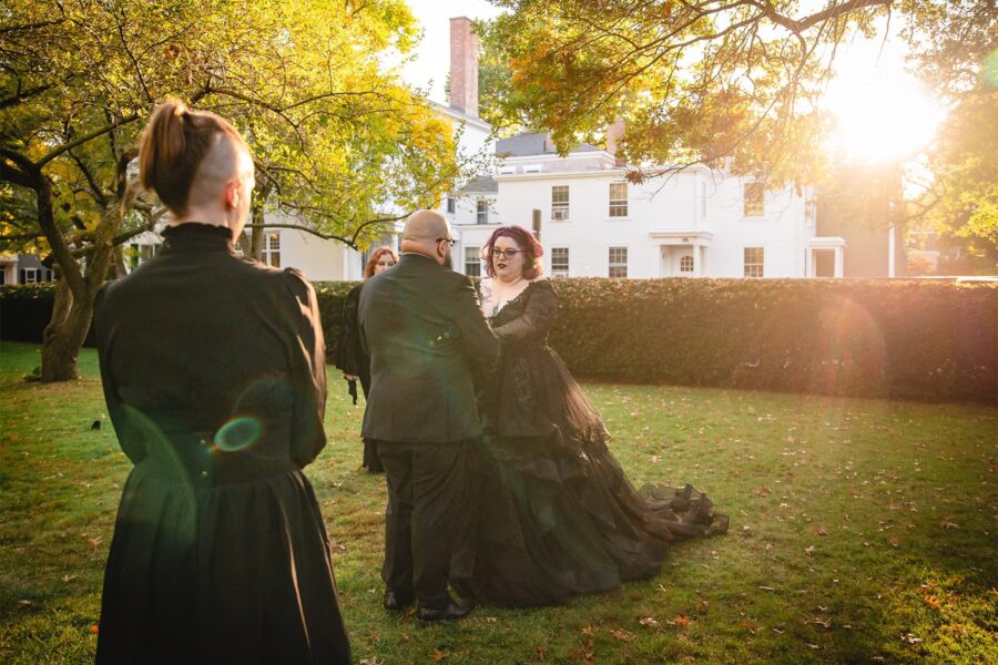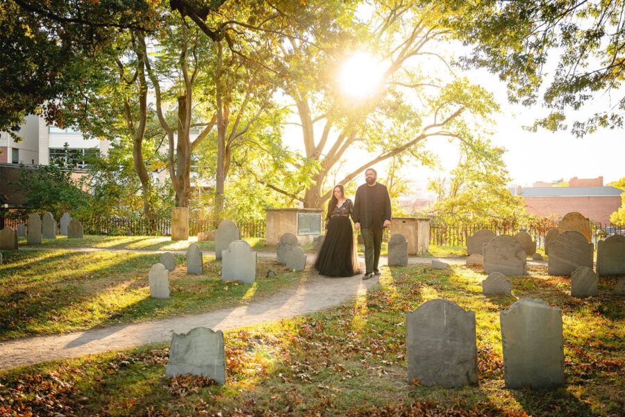 We’ll begin with getting ready at your downtown Salem VRBO or AirBnB, then head out on a walking tour that captures the best of what Salem has to offer. We’ll weave our way through cobblestone streets, historic landmarks, and colorful seasonal displays. You’ll also get insider tips on the best things to do, hidden-gem places to eat, and quiet escapes for intimate moments during this bustling time. Say your vows in one of Salem’s secluded public gardens, then experience downtown spooky season with entertaining buskers and costumed Halloween enthusiasts.