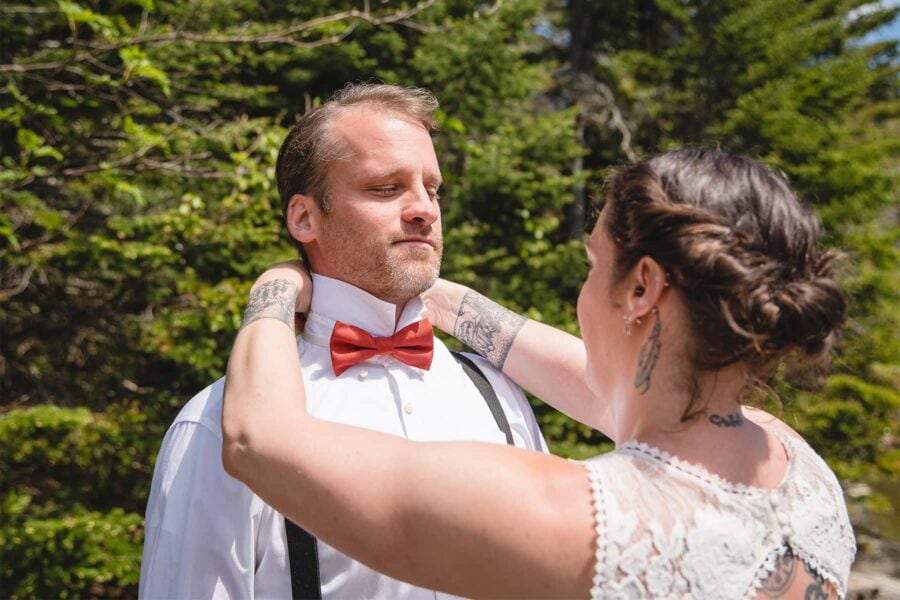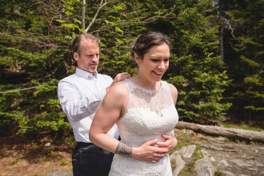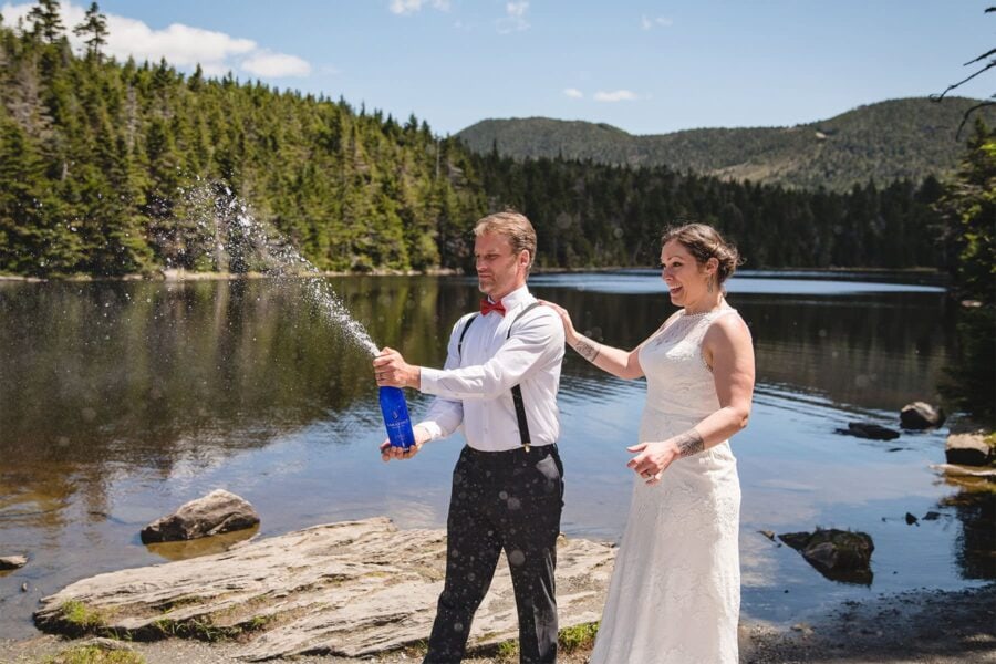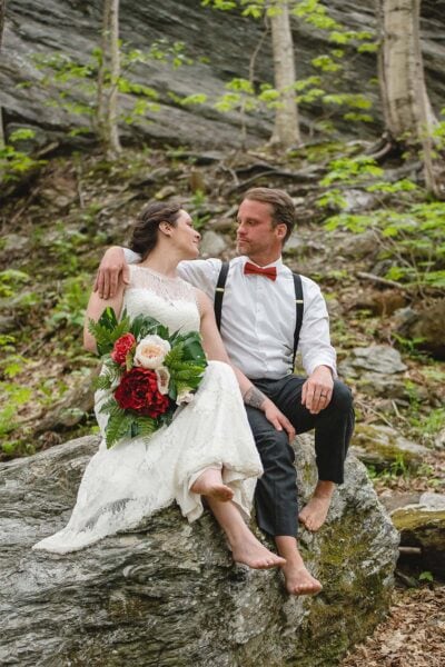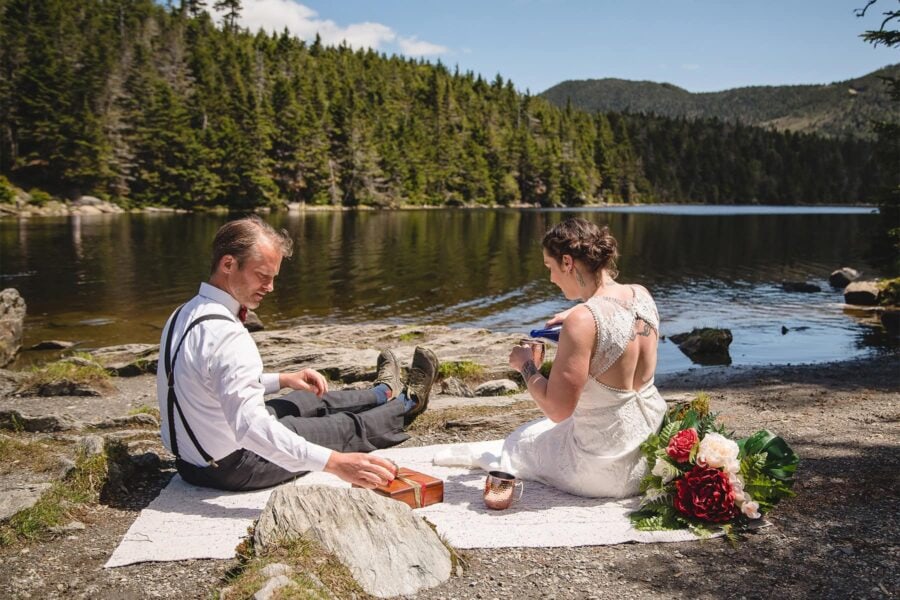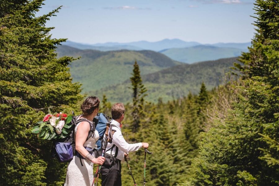 The day starts with getting our hiking packs and picnic ready at your accommodations in Stowe. From there, we’ll be hiking to the top of Spruce Peak on a trail that meets your skill level for a challenging and fun hike to a mountaintop pond. At the top, we’ll find a secluded spot to change into your wedding attire and get ready for your pondside vow exchange and celebratory picnic.