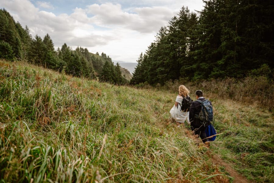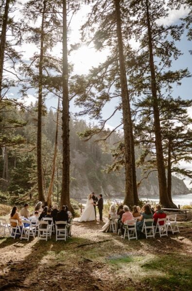 Then, you and your family and friends will take a short hike through a forest in Oswald West State Park to your ceremony spot, overlooking the ocean. You’ll commemorate the official start of your marriage, with the waves crashing in the background.