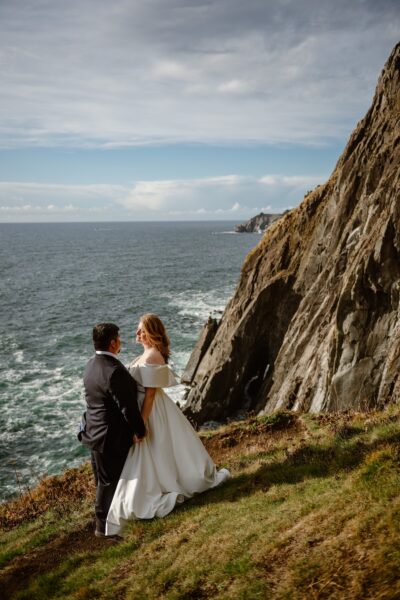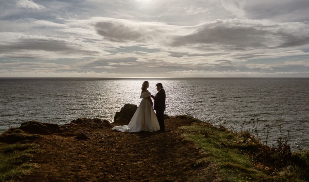 After your ceremony, your loved ones will take a break while you and your partner explore a few different locations together. You’ll walk along the beach before heading to your private vows spot, with views of epic cliff sides and the sweeping ocean. You’ll tearfully share your promises with each other against the dramatic landscape.