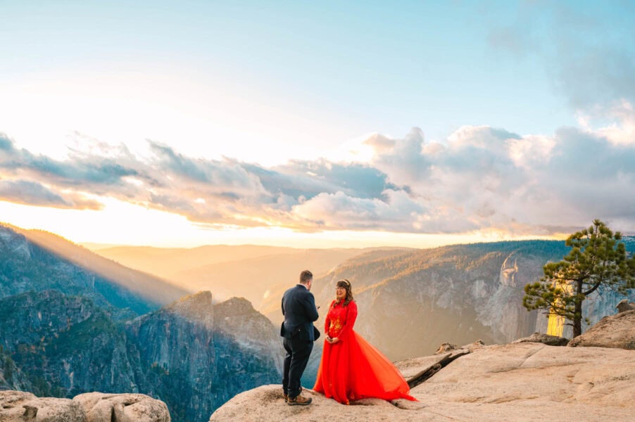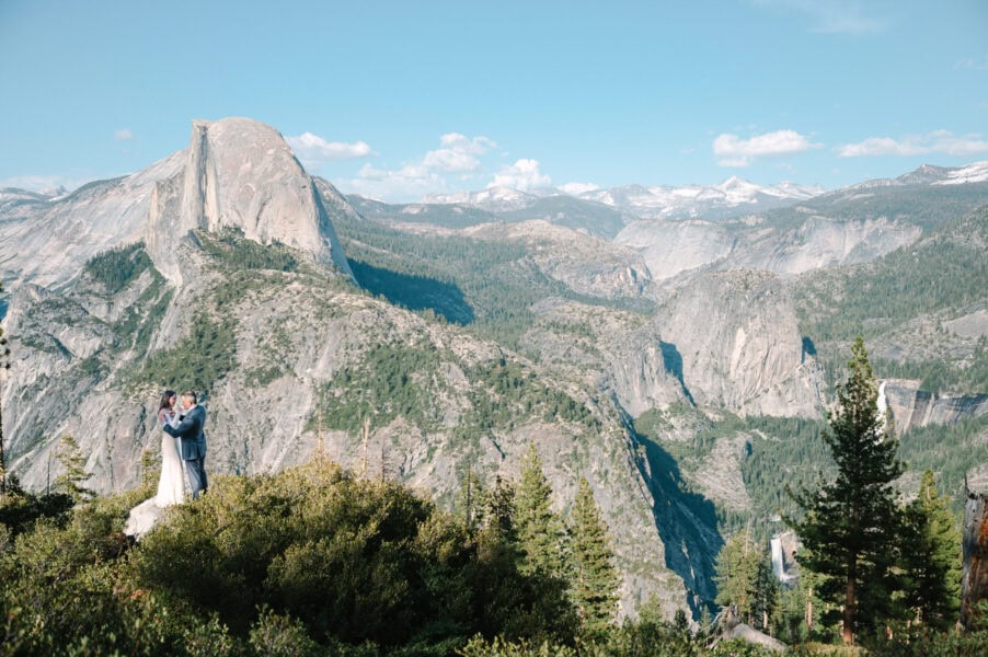 Your day begins at sunrise high above the valley floor at Glacier Point, where the first light of morning breaks over Half Dome and the Sierra peaks. With the stillness of dawn all around you, this is where you’ll exchange vows—quiet, intimate, and surrounded by endless mountain views.