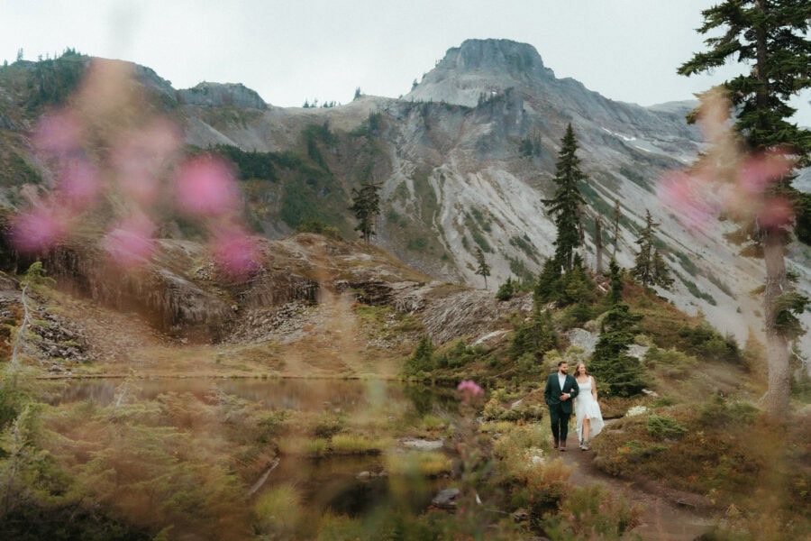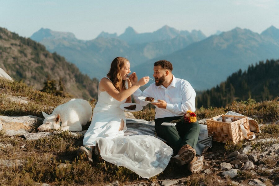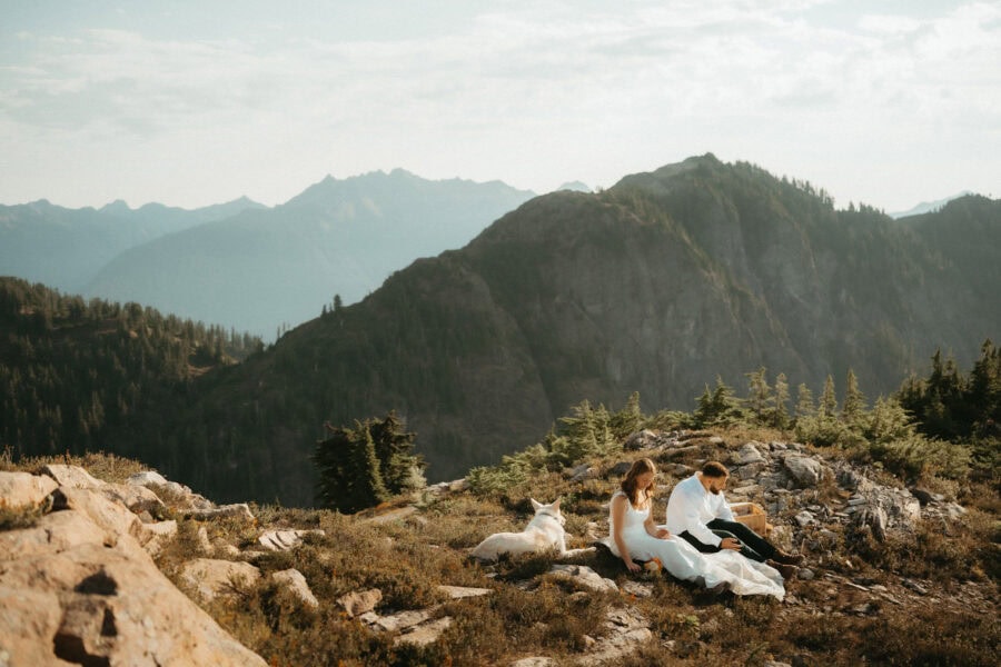 After your vows, we’ll ease into the morning. A simple breakfast picnic, warm coffee in your hands, celebratory drinks, and time to breathe it all in. From there, we will take some time for some couples portraits and explore the nearby alpine viewpoints, taking in the 360-degree overlooks, stopping at tucked-away mountain lakes, or weaving through seasonal wildflower fields as the light becomes soft and even.