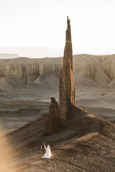 To wrap up the day, you’ll take a short hike out into what seems like vast nothingness… Until you turn a corner and are all of a sudden met with spectacular views of a 100’ towering rock spire, bursting up from nowhere and piercing the blue sky above.