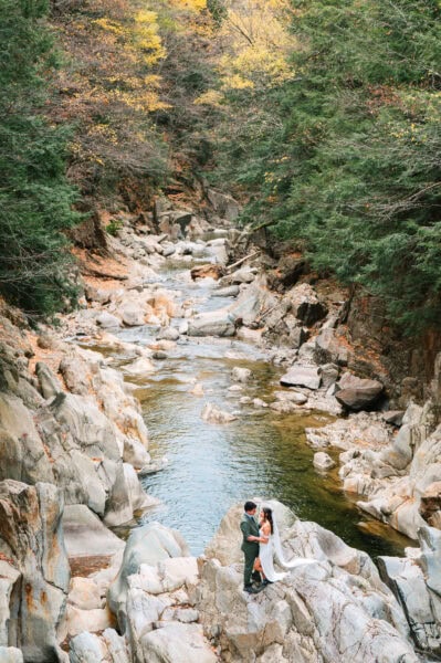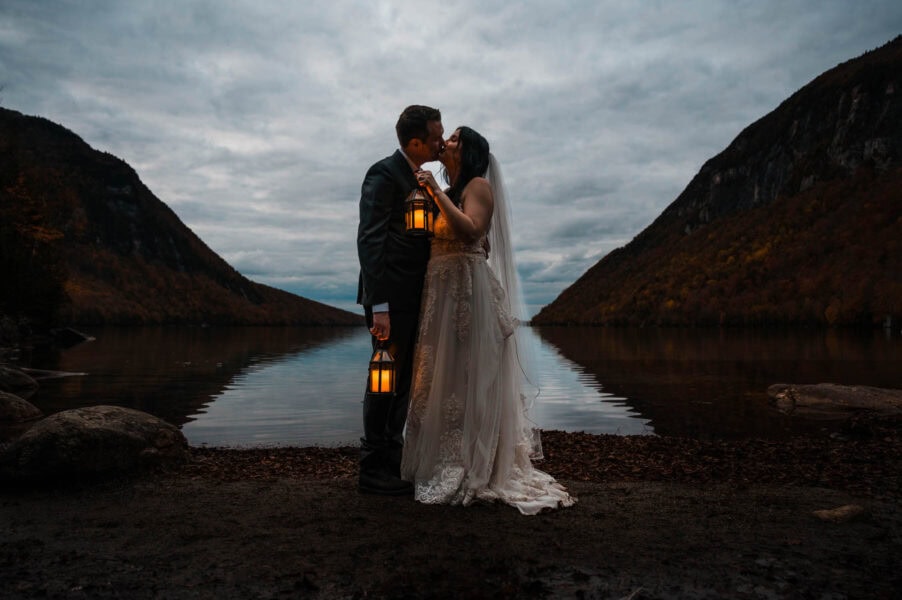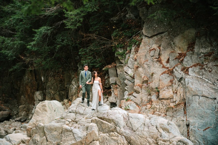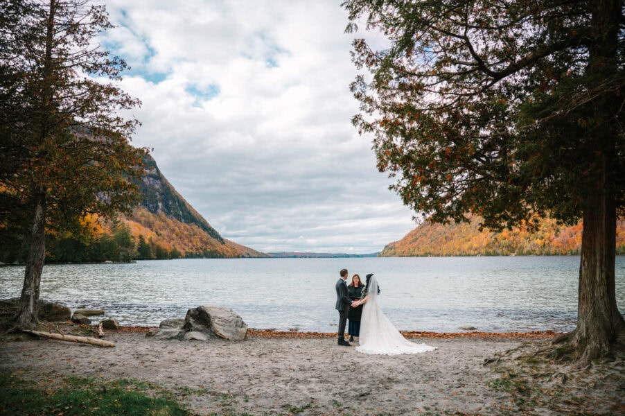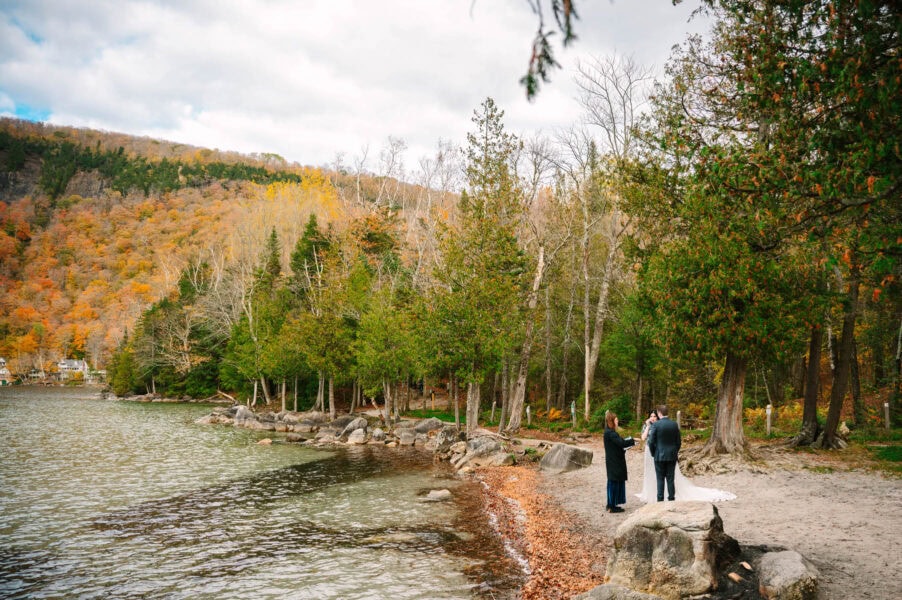 We’ll start the day at your cabin or lakeside rental with getting ready photos, capturing the anticipation and small details that set the tone. Once you’re dressed, we’ll head to Lake Willoughby for your ceremony. With sheer cliffs rising on both sides of the water, this spot feels dramatic and intimate all at once. You’ll exchange vows along the shoreline, then wander for portraits beside the lake, framed by forests and mountains.