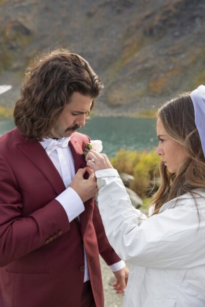 Over the course of your elopement day, you’ll start at a nearby cabin where you can get ready before heading to the trailhead. From there, you’ll hike to a location that matches your vision, whether that’s a quiet ridge with valley views, an alpine lake, or a mountain meadow framed by peaks. Hatcher Pass offers a range of trails to suit different comfort levels, and we’ll help you choose terrain that feels right for your day.