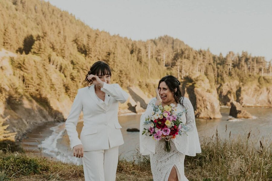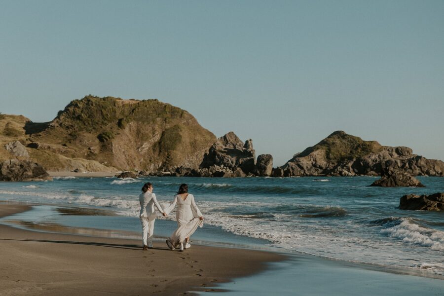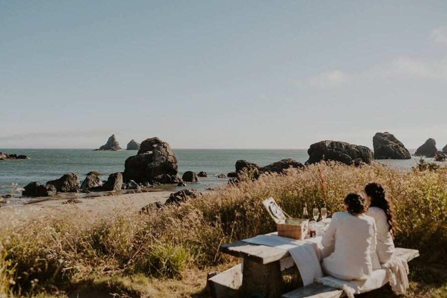 Following your vows, set up your beach picnic for some time to soak in officially being married. Wrap up your elopement by visiting an epic cliff location as the sunsets.