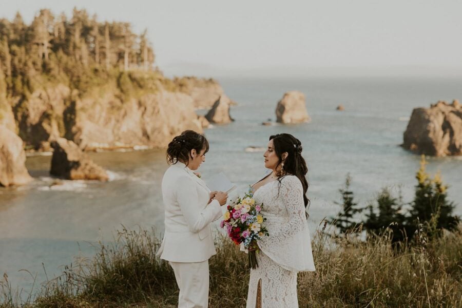A quiet, peaceful day on the coast that’s all about you two and your love. Start the day getting ready at your vacation rental with a view. Share your first look once you finish getting ready and then read letters from loved ones congratulating your milestone.