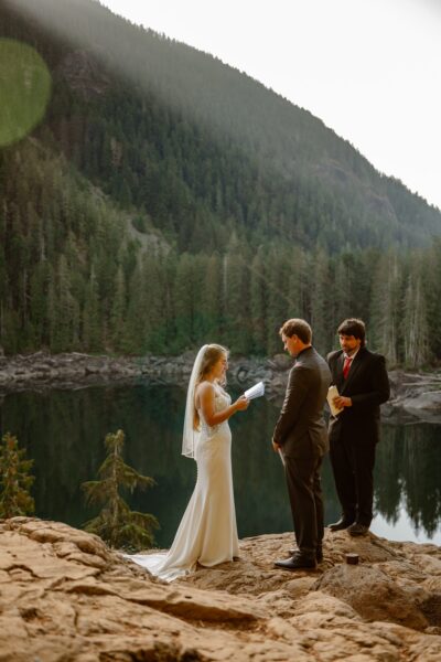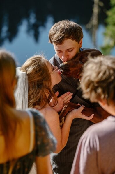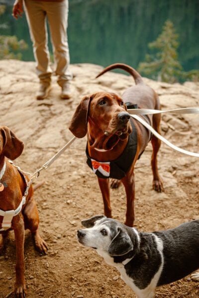 Soon, we’ll arrive at the lake where you’ll find an overlook to have your ceremony. Here, you’ll exchange your vows, with your closest loved ones (including your dogs!) as witnesses.