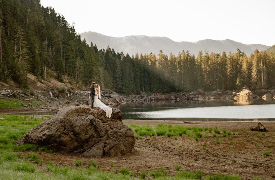 You’ll start your day just before sunrise. We’ll meet at a trailhead in Olympic National Forest (which permits dogs on trail!) to a mountain lake where you’ll do some last minute getting ready before sharing an intimate first look as daylight starts to light up the trees – with your pups (accompanied by a few of your closest family members) looking on, of course!
