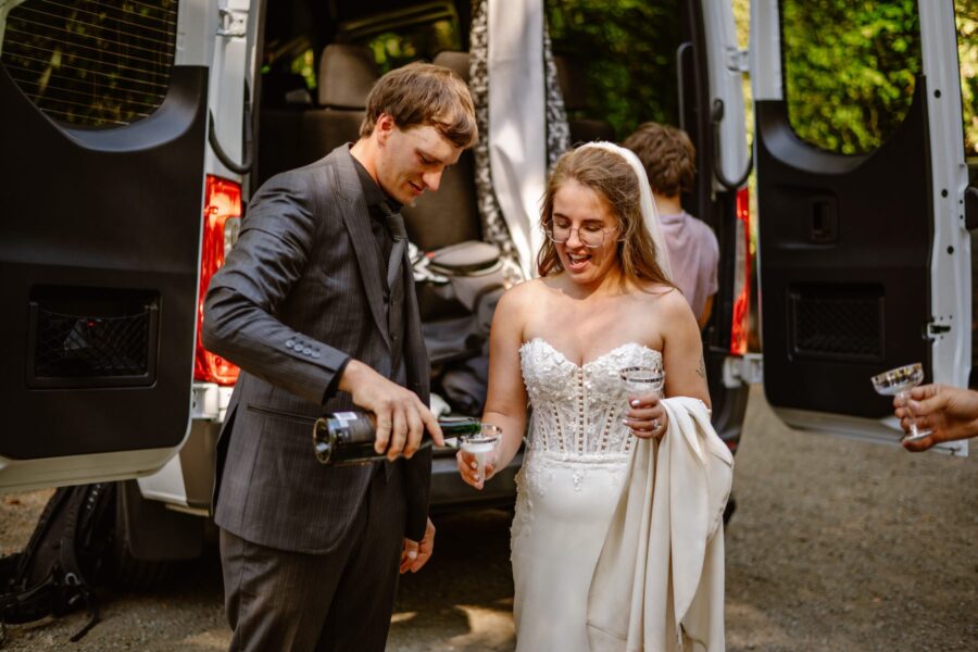 After you’re done exploring, we’ll start our hike out. Along the way we’ll stop for portraits with all your favorite people (and dogs!) to commemorate their presence with you on this special day. Then, you’ll all share a toast at the cars before we head out to your next location.