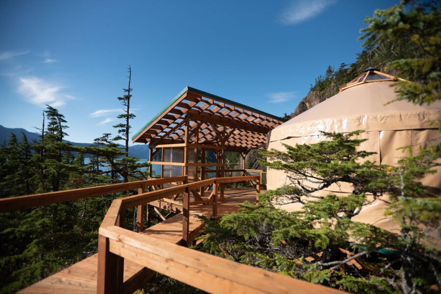 Your story begins in Talkeetna, where you’ll check into adventure luxe lodging — think a lodge, dome, A-frame, or well-appointed cabin — your private base for the adventure ahead. Whether you get ready together or apart for a private first look, anticipation builds before heading out to board your ski plane.