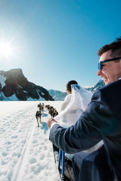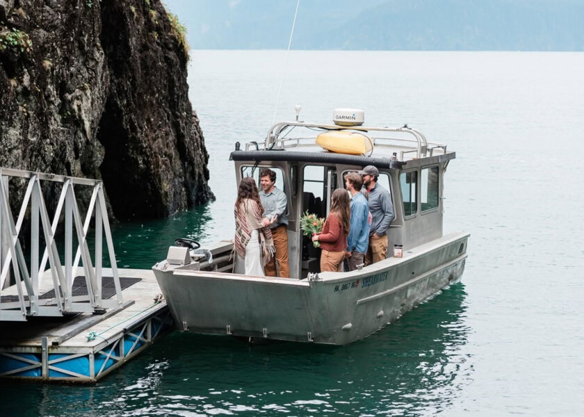 Thinking about an intimate wedding in Alaska? This luxury exlopement experience is a top candidate to convert to a guest-inclusive wedding, as the flow remains unchanged. Ski planes such as the one you will be in can seat up to 10 passengers each (20 total with two planes), making glacier weddings with family more accessible than helicopters. Riverboats, such as the one in this package, can also be upgraded for 10–20 guests, creating a shared celebration that balances adventure with quiet luxury.