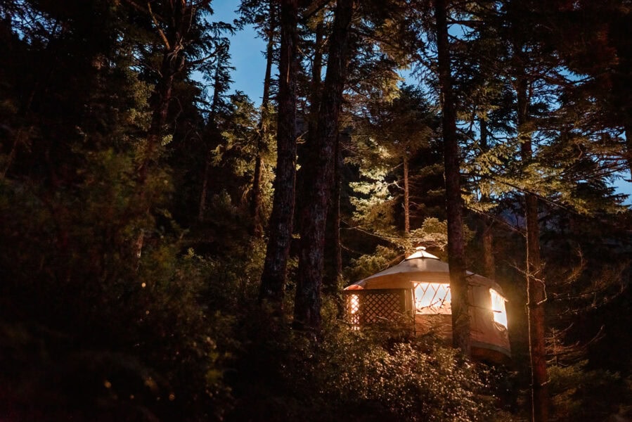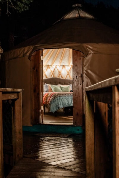 Back at your lodge, a private chef prepares your custom, multi-course plated dinner that’s served beautifully at your sweetheart table — complete with fine china, curated presentation, and candlelit touches. Your incredible day closes with a toast of bubbly, a petite wedding cake, and time in the hot tub or sauna, or, under the stars.