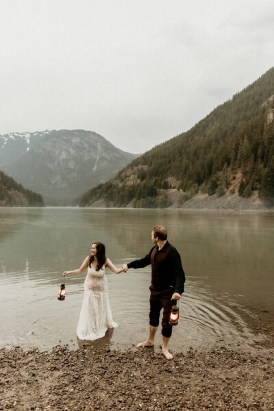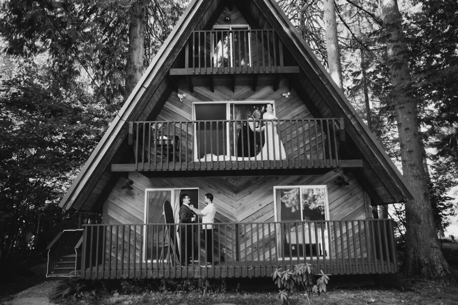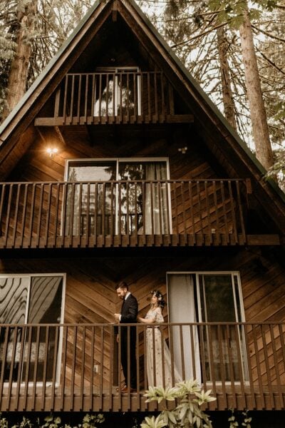 You’ll begin your day tucked away at a cozy cabin in the woods, surrounded by towering evergreens and the quiet sounds of nature. The morning will feel slow and intentional. You can choose to get ready together, soaking in every moment side by side, or separately with your closest friends or family helping you button, zip, fluff, and adjust. There’s something incredibly special about those getting-ready moments, the laughter, the happy nerves, the quiet pauses where it all starts to feel real.
