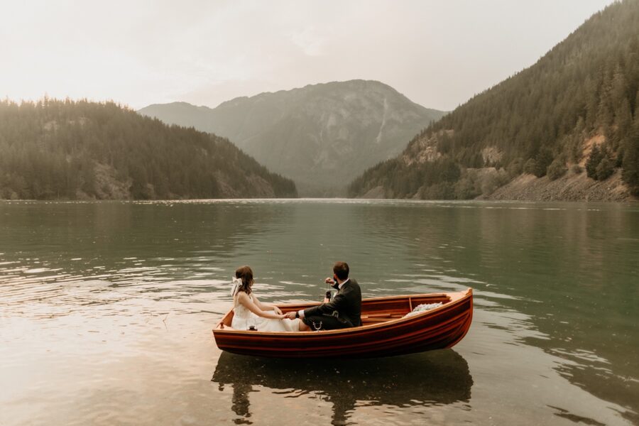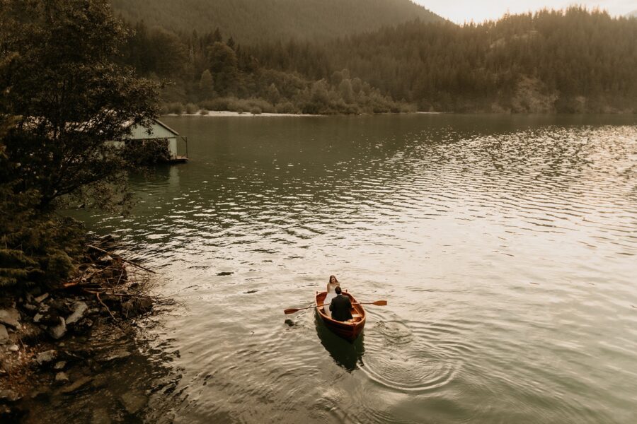 As the sun begins to dip lower and the light turns golden, we’ll save the most magical moment for last. You’ll step into my vintage wooden rowboat, gently pushing off from the shore for a sunset glide across the lake. The mountains will glow in warm light, the water reflecting streaks of pink and gold as you drift together in the quiet. It’s peaceful, cinematic, and wildly romantic, the perfect ending to a day that feels adventurous, intentional, and completely unforgettable.
