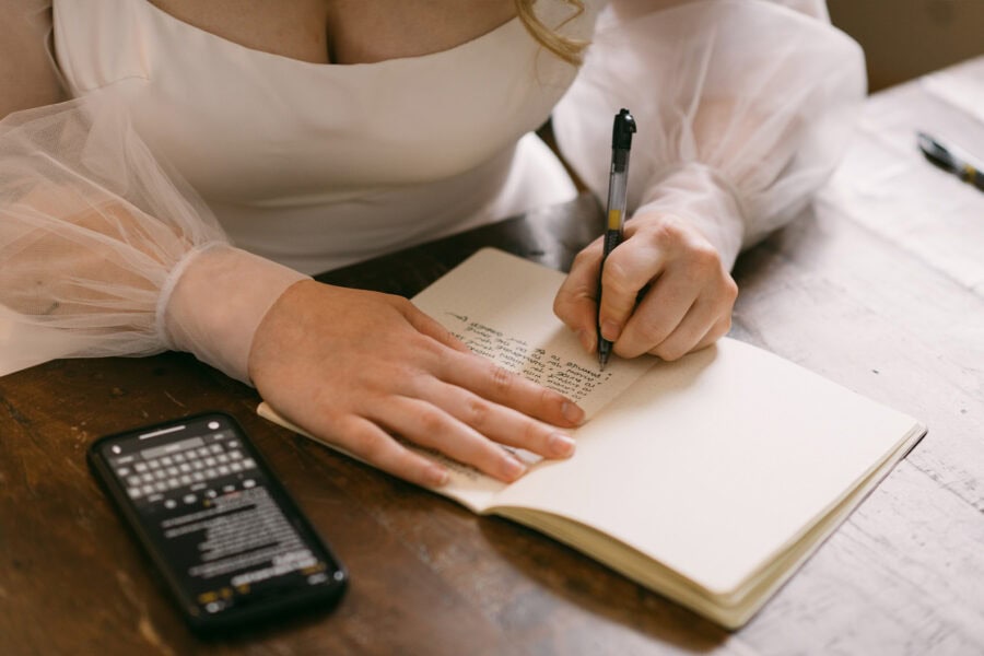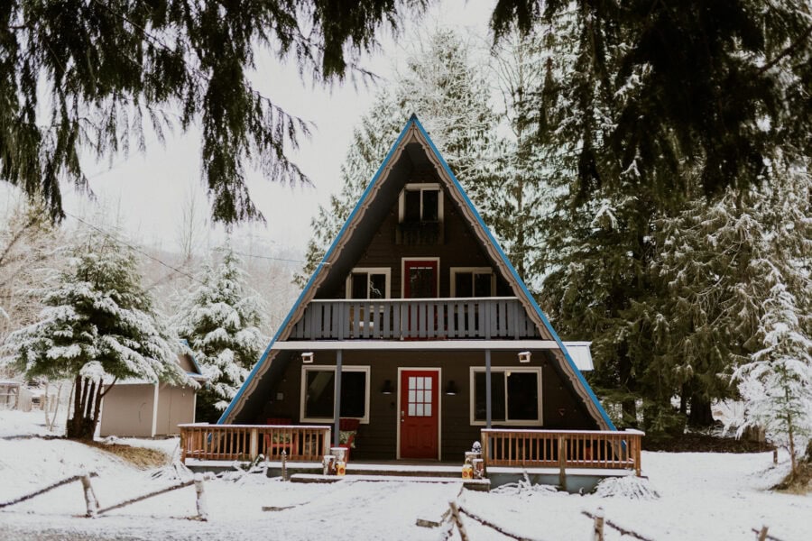 The day begins at a chalet-style lodge near the Leavenworth town square. Inside, the morning is quiet and unhurried. You get ready together, helping each other zip jackets, lace snow boots, and adjust layers before heading out. Before leaving, you sit by the fireplace to quietly write down your vows to one another, taking a few minutes together before the day moves outside.