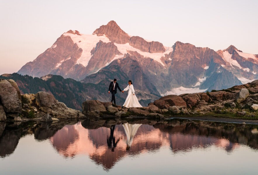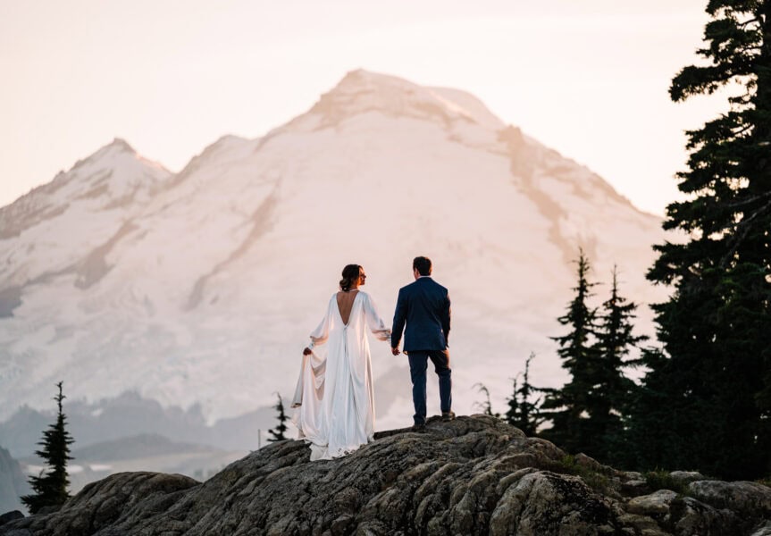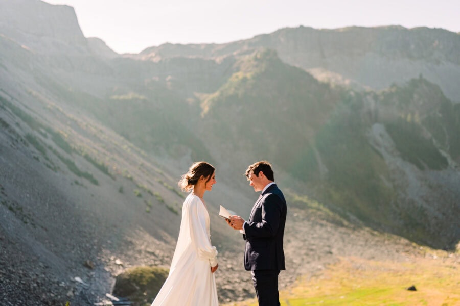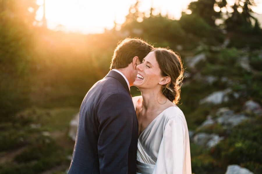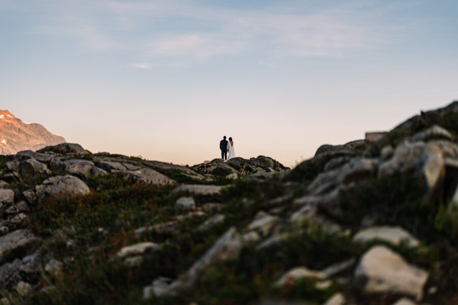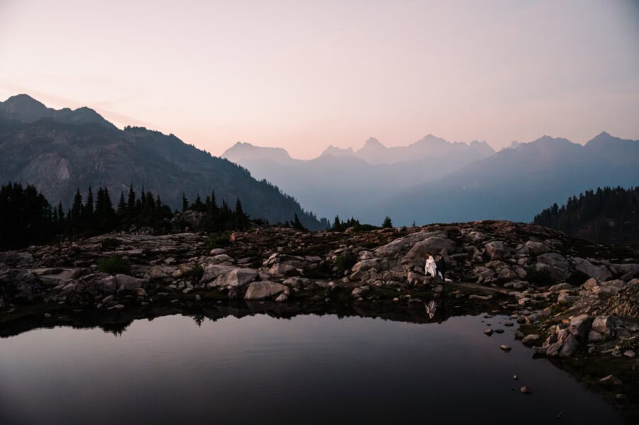 As the sun dips below the horizon, the mountain ahead of us will start to glow in shades of orange or pink; this phenomenon called alpenglow is so special to witness! We’ll finish up our time together taking photos with lanterns as the light fades from the sky, and it will be the perfect end to your elopement day.