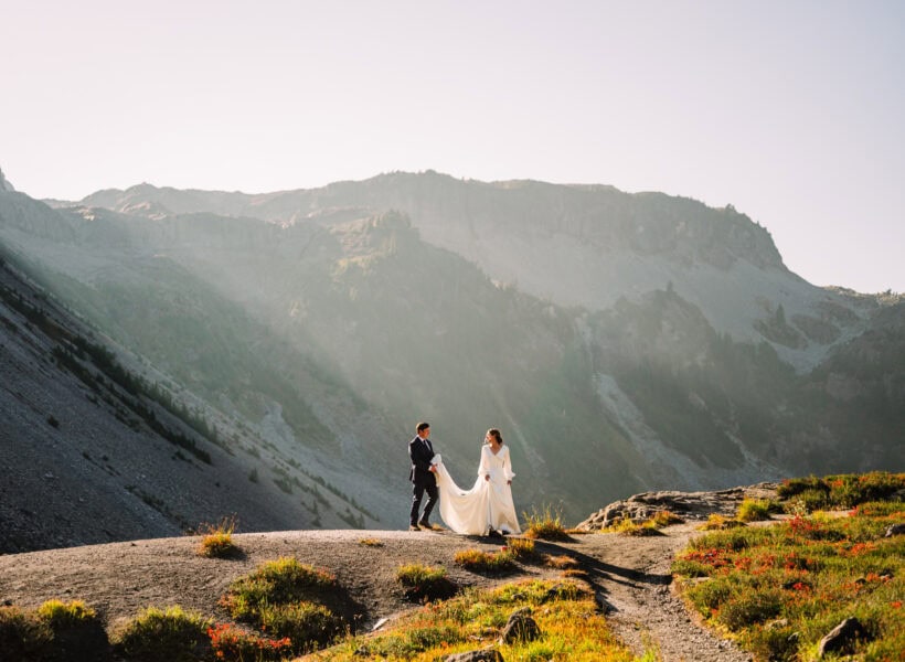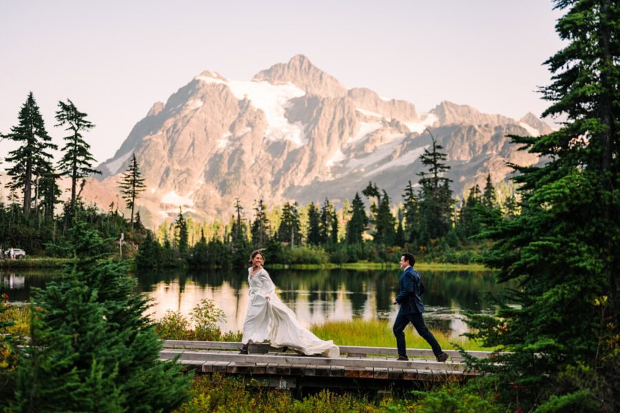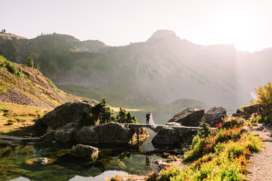 Imagine stepping out of your car and onto a trail that leads you around the meadow of a glacier-carved valley, and having your first look with your soon-to-be-spouse. Then we’ll lead your families just 2 minutes down a paved path to get to an overlook that might as well have been placed there just for you. That’s where you get to say your vows; at this private, accessible spot amidst mountain peaks.