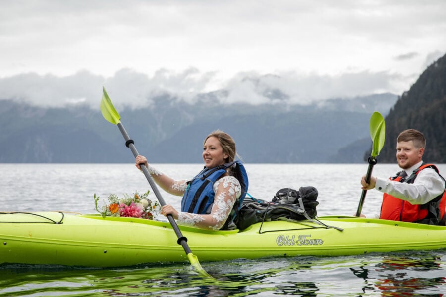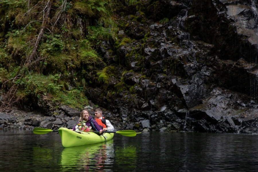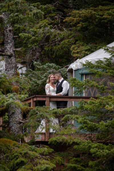 This all-inclusive off-grid island yurt elopement is designed for couples who want to step away from the hustle and bustle. Tucked along Alaska’s remote coastline, this experience is about privacy, intention, and time together. No crowds. No rushing. No distractions beyond the water, the forest, and the rhythm of the days you spend there.