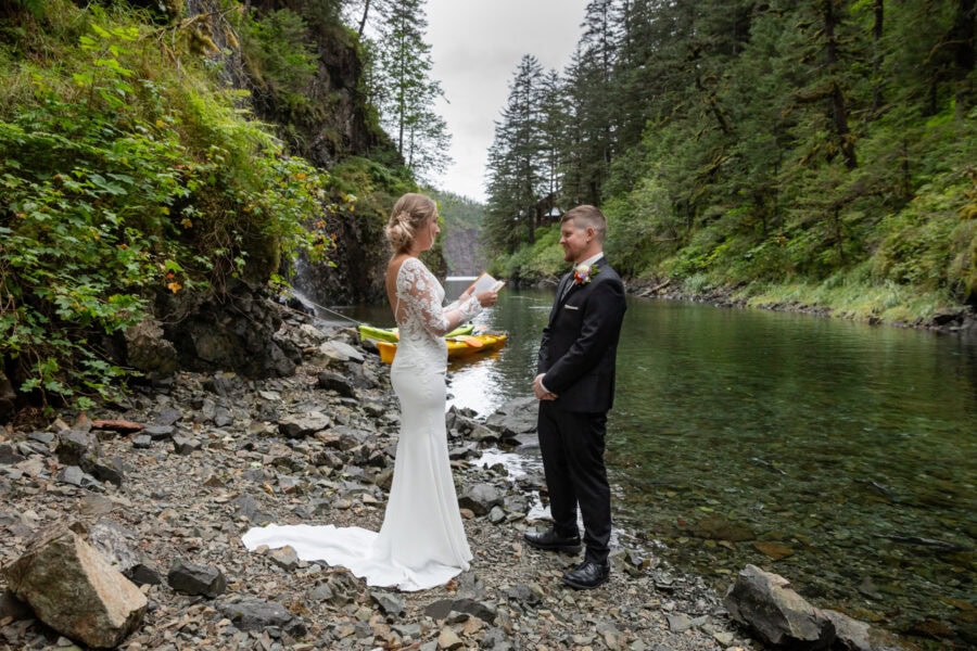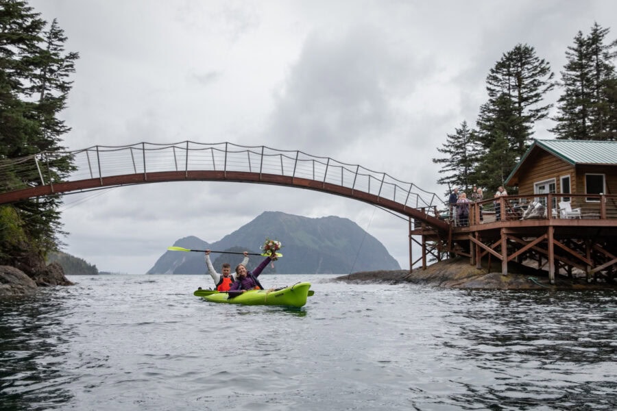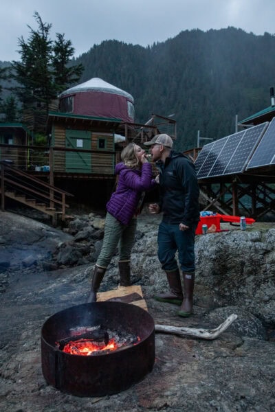 Over the course of several days, you’ll travel by boat to a secluded island, settle into a cozy off-grid yurt, and experience Alaska at a slower pace. Your elopement day is just one part of the experience, woven between quiet mornings, private meals at your yurt, coastal exploring, and space to simply be present with each other.